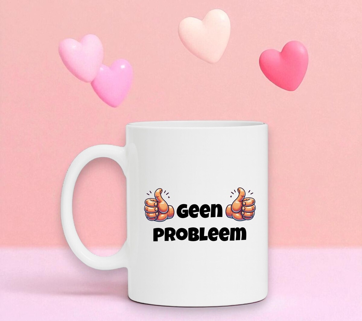Mok geen probleem. De witte koffie of thee mok is vaatwasserbestendig en magnetronbestendig. De mok heeft een hoogte van 96mm en een diameter van 80mm.
