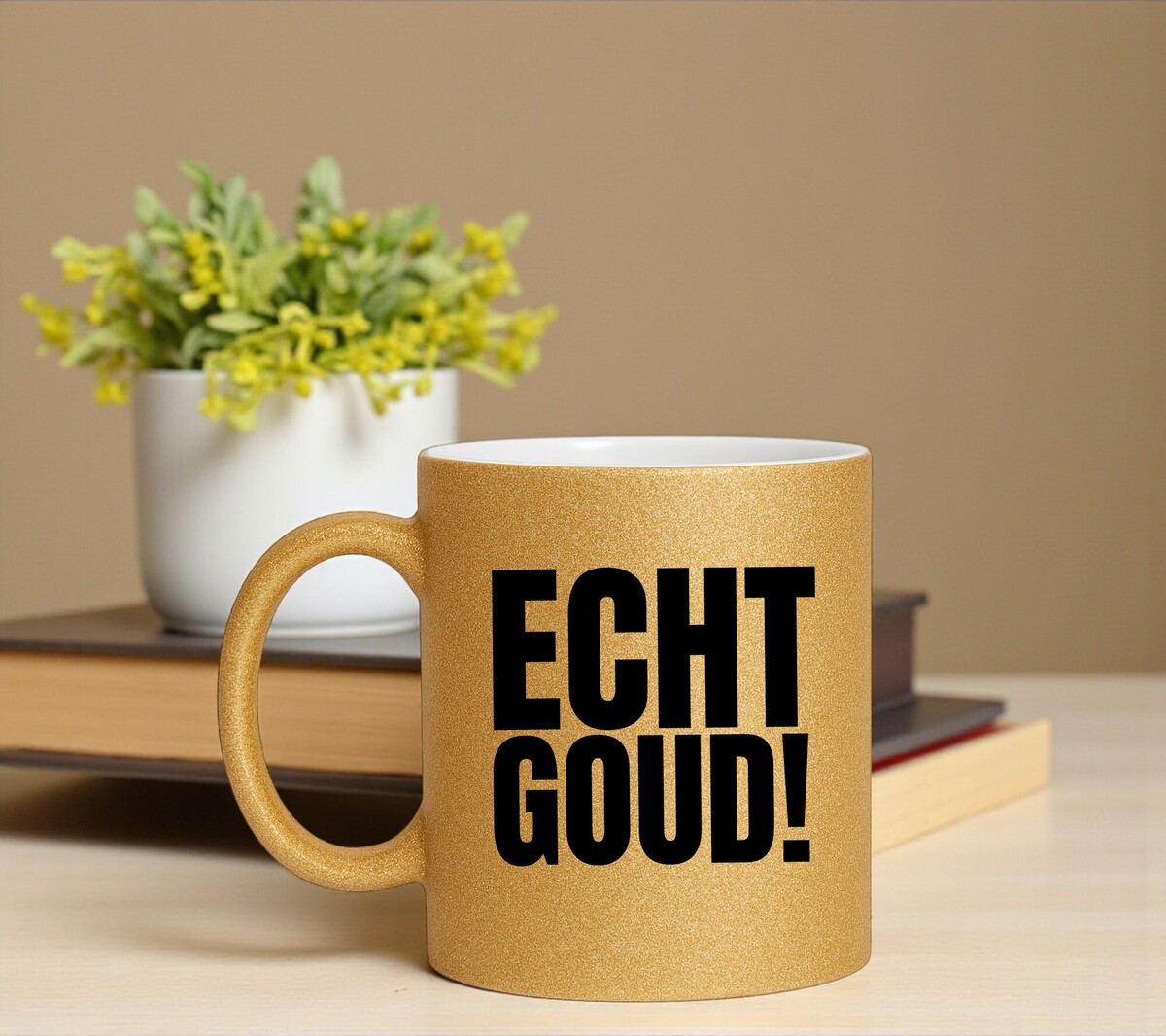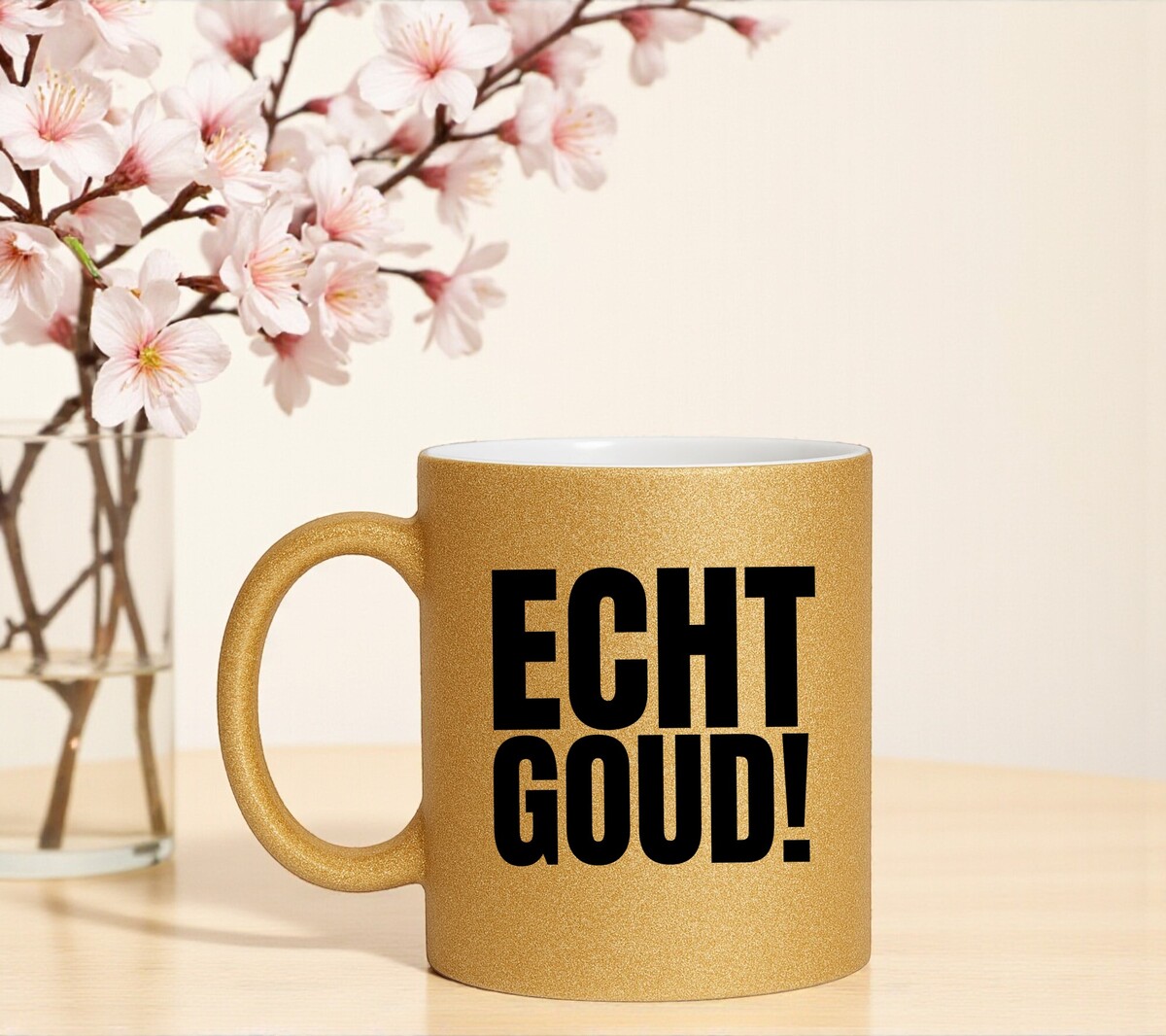 Mok glitter goud met de opdruk echt goud! echt super fout!