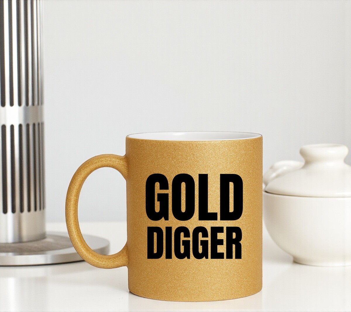 Gold digger gouden glitter koffie of thee mok!