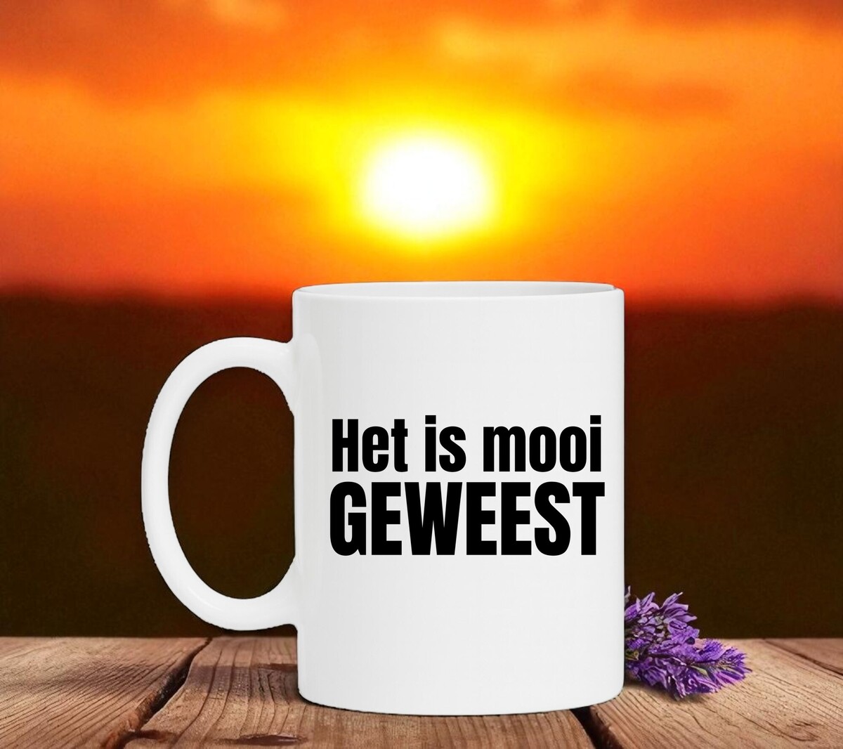 Het is mooi geweest mok. De witte koffie of thee mok is vaatwasserbestendig en magnetronbestendig. De mok heeft een hoogte van 96mm en een diameter van 80mm.
