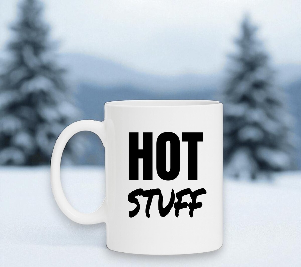 Een grappige koffie Mok met de opdruk hot stuff. De mok is magnetron en vaatwasserbestendig en de witte mok heeft een hoogte van 96mm en een diameter van 80mm.