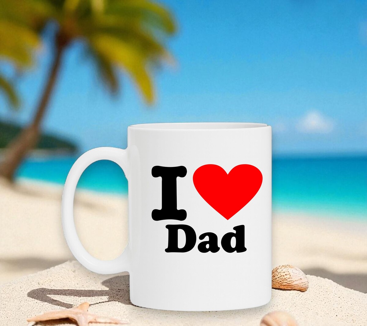 Mok i love dad. Een prachtige Vaderdag koffie mok. De vaderdag koffie of thee beker is vaatwasserbestendig en magnetronbestendig. De beker heeft een hoogte van 96mm en een diameter van 80mm.