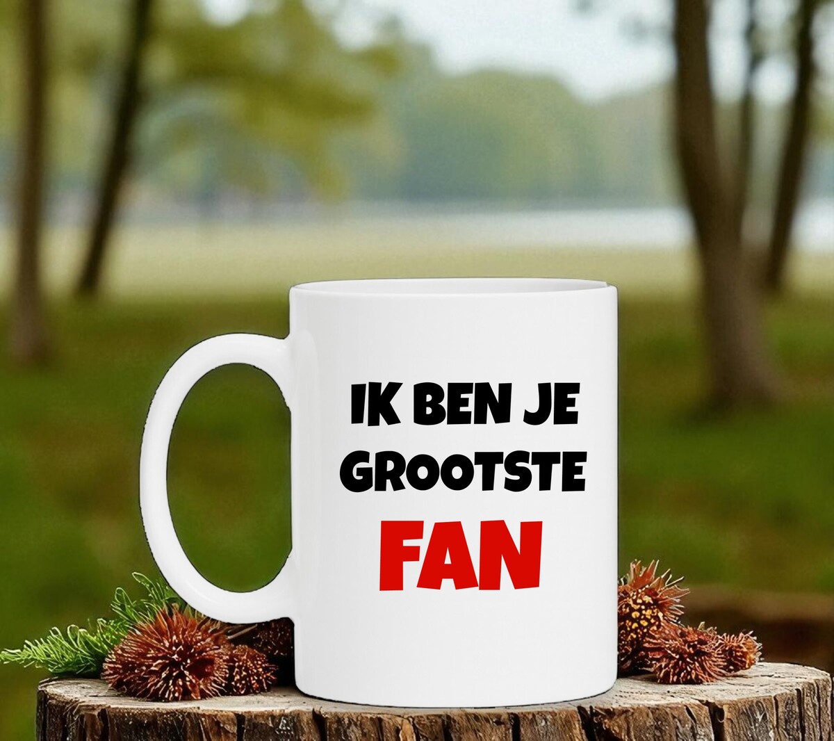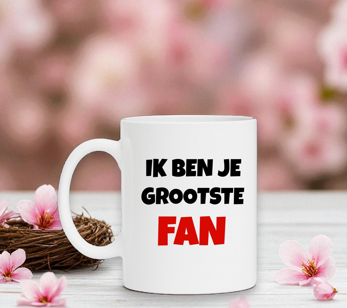 Een prachtige witte koffie of thee mok met de tekst 'Ik ben je grootste fan'. De mok is magnetron en vaatwasserbestendig en de witte mok heeft een hoogte van 96mm en een diameter van 80mm.