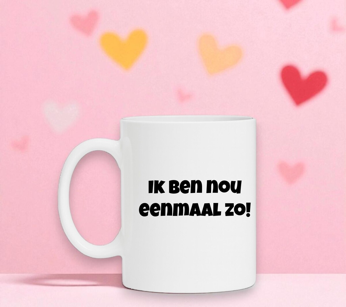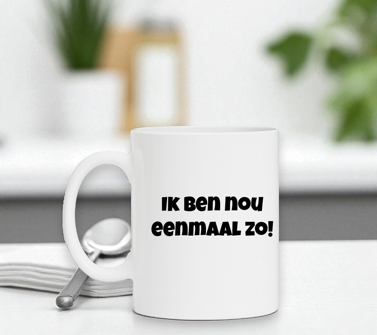 Een leuke witte koffiemok of theemok voor mensen die zich zelf helemaal niet willen veranderen ze zijn nu eemaal zo!