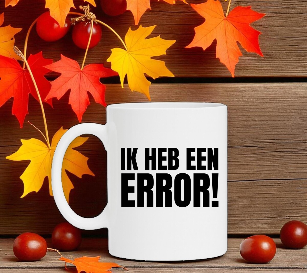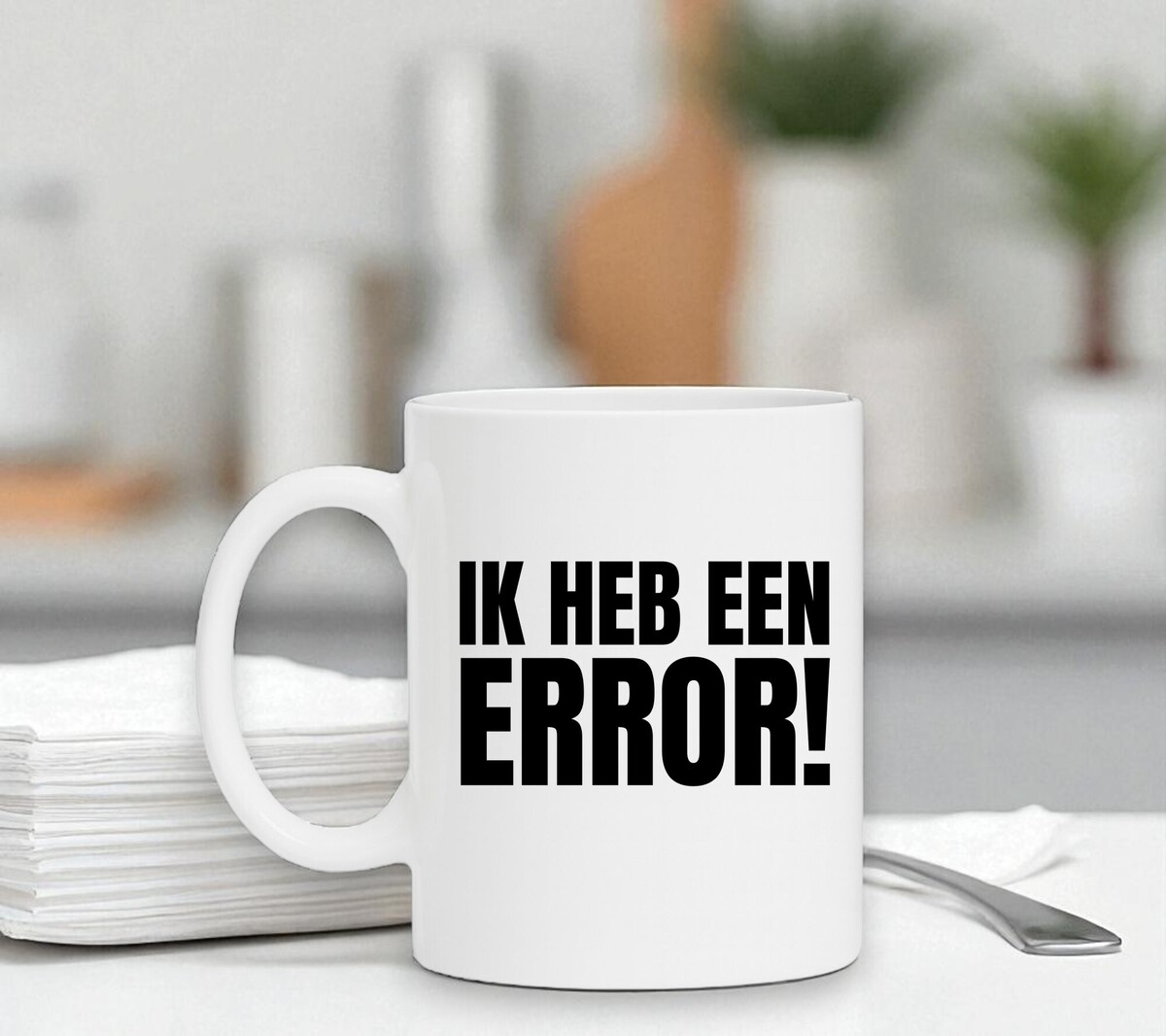 Mok ik heb een error! Grappig koffie mok. De witte koffie of thee mok is vaatwasserbestendig en magnetronbestendig. De mok heeft een hoogte van 96mm en een diameter van 80mm.