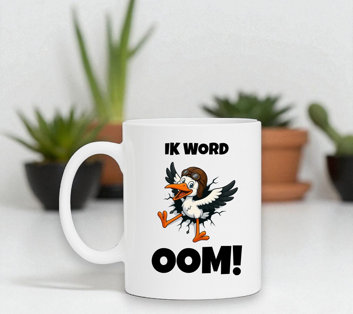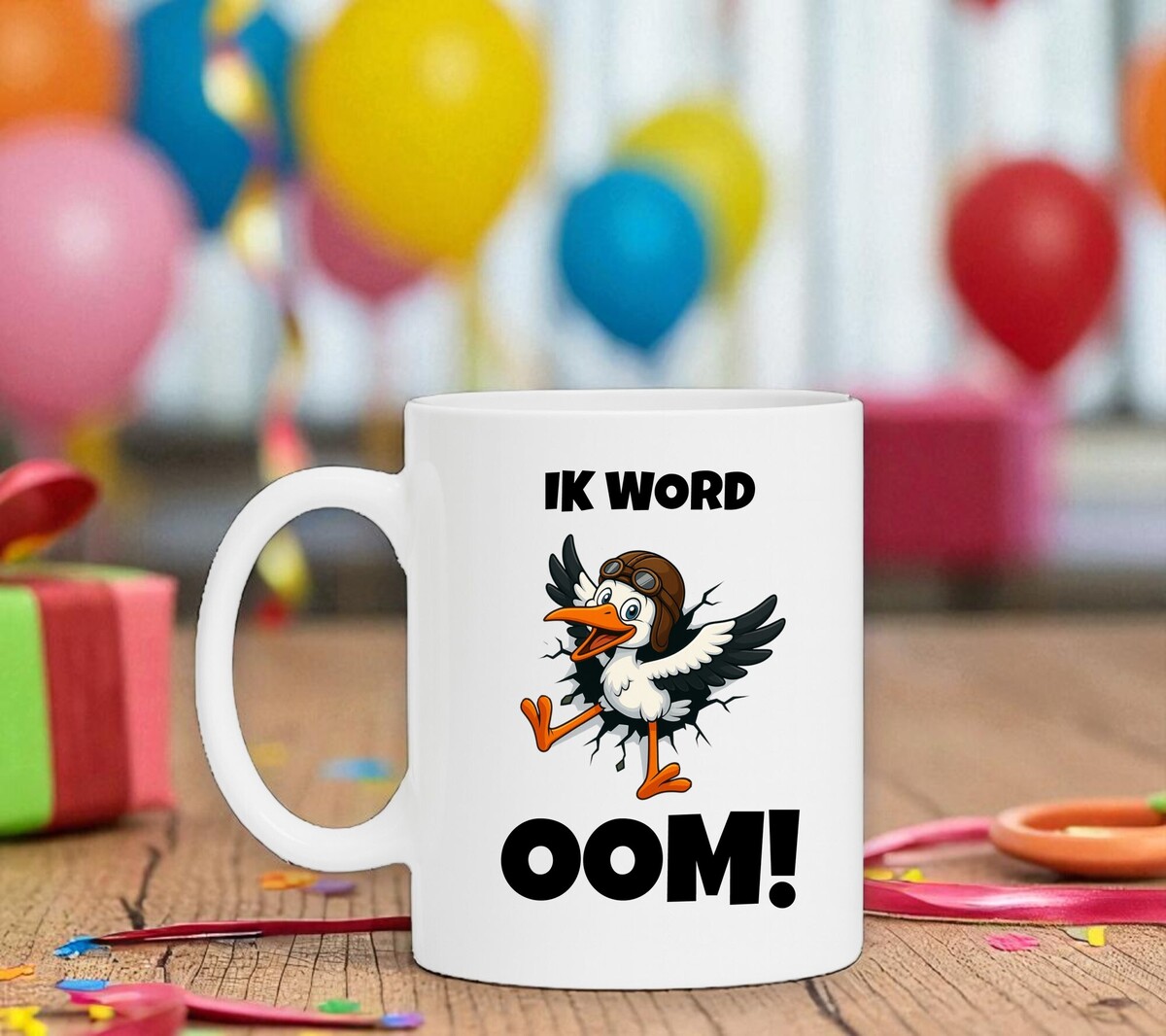Deze mok is een leuke en originele manier om bijzonder nieuws te delen. Met de opdruk “ik word oom!” en een vrolijke cartoonooievaar die speels uit het ontwerp tevoorschijn komt, brengt elke koffie- of theepauze een glimlach. De mok combineert humor met een trots moment en is een praktisch cadeau om het aanstaande oom-schap op een mooie manier te vieren.