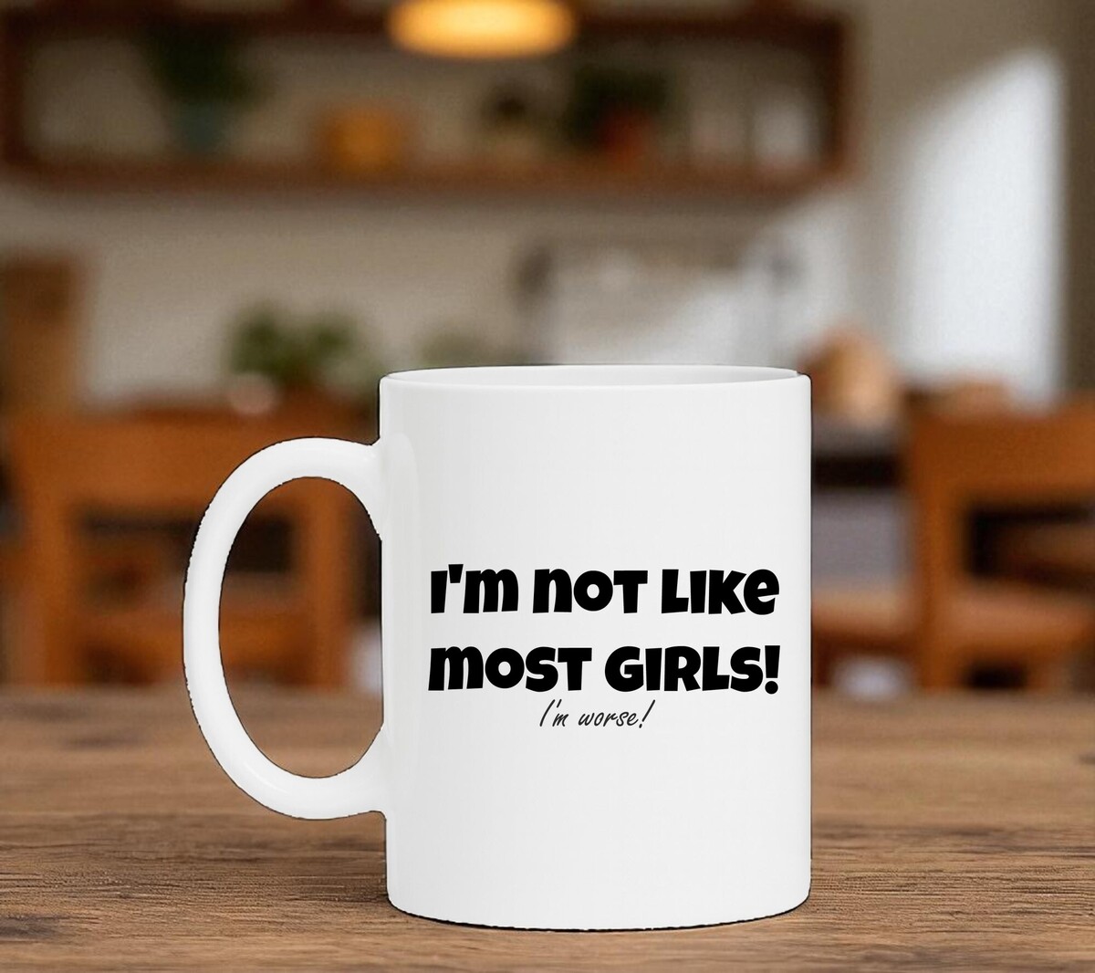 Mok I'm not like most girls I'm worse! De witte koffie of thee mok is vaatwasserbestendig en magnetronbestendig. De mok heeft een hoogte van 96mm en een diameter van 80mm.