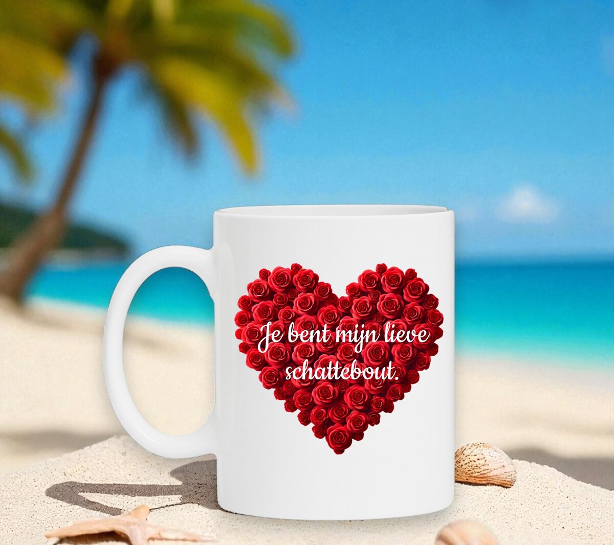 Een mok voor Valentijn! Op de mok staat de opdruk je bent mijn lieve schattebout. .