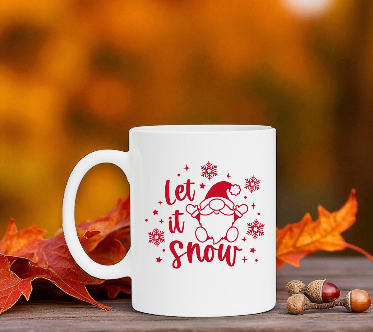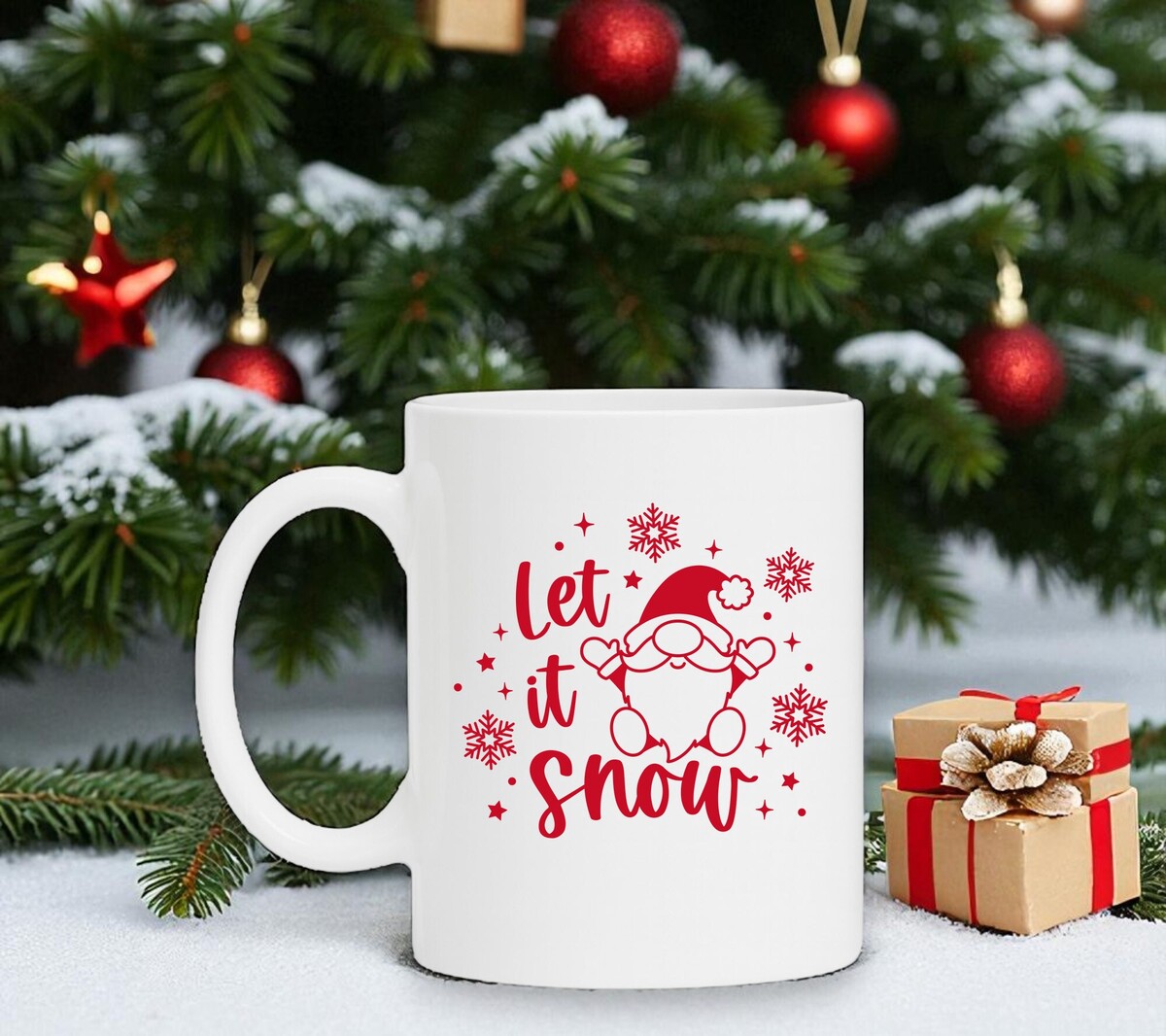 Prachtige kerst koffie of thee mok met een mooie opdruk let it snow. De witte koffie of thee mok is vaatwasserbestendig en magnetronbestendig. De mok heeft een hoogte van 96mm en een diameter van 80mm.