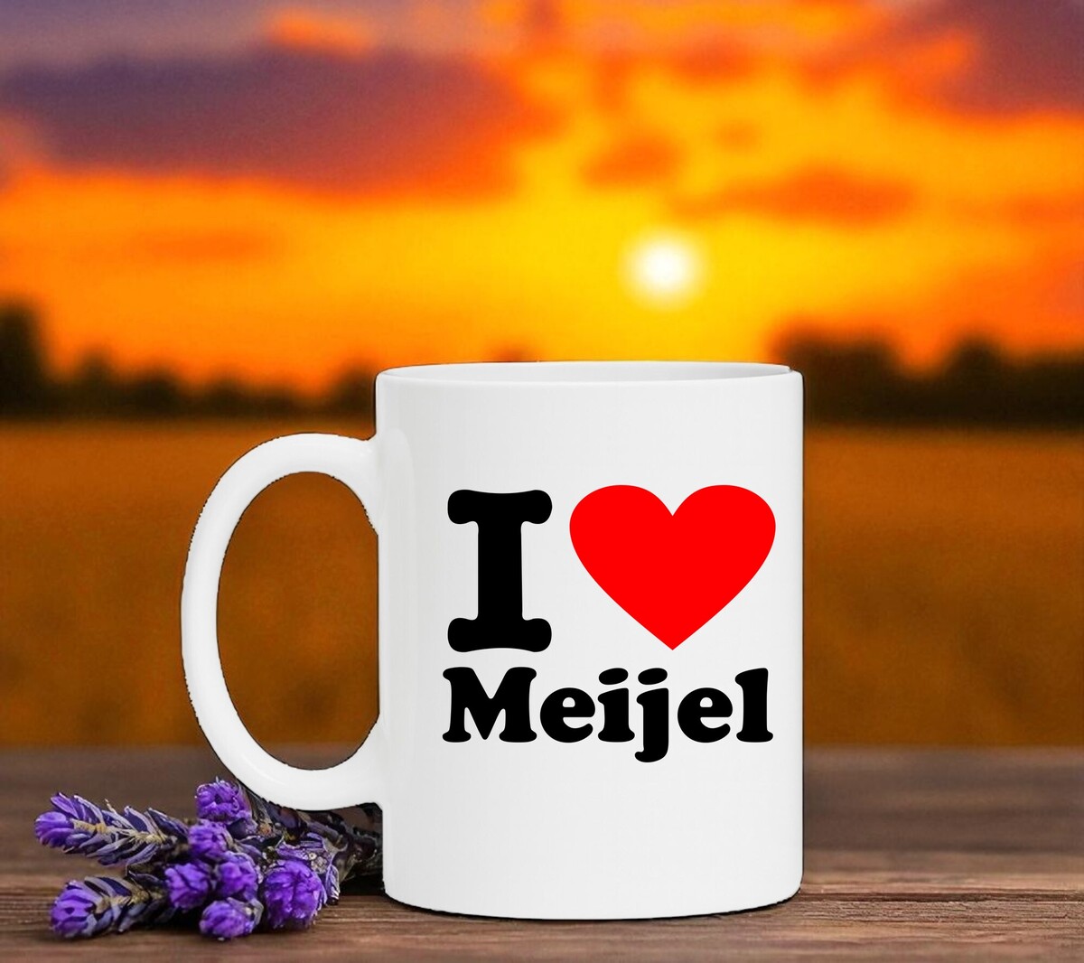 Het is mogelijk om dit artikel volledig uniek en persoonlijk te maken! Je kan volledig creatief aan de slag gaan en alles naar jouw smaak maken. Of je nu van een strakke simplistische designs houdt, gekke kleuren of van drukke prints, het is allemaal aan jou. Natuurlijk ook leuk om online te ontwerpen en weg te geven als cadeau. Of voor groepsactiviteiten waar je als één groep een eenheid wilt uitstralen. Met onze simpele ontwerptool en uitstekende service heb jij je unieke produkt snel in huis. personaliseer Mok met de opdruk I love Meijel dorp in limburg Gepersonaliseerd zijn de leukste cadeaus om te krijgen!