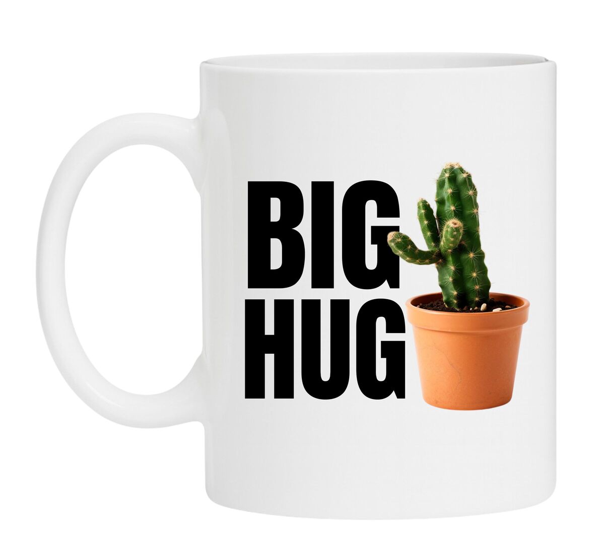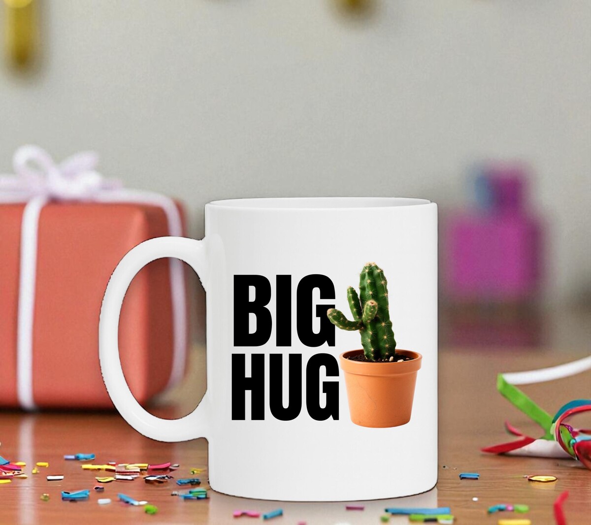 Een leuke koffie of thee mok met de opdruk van een cactus met daarnaast de tekst big hug.