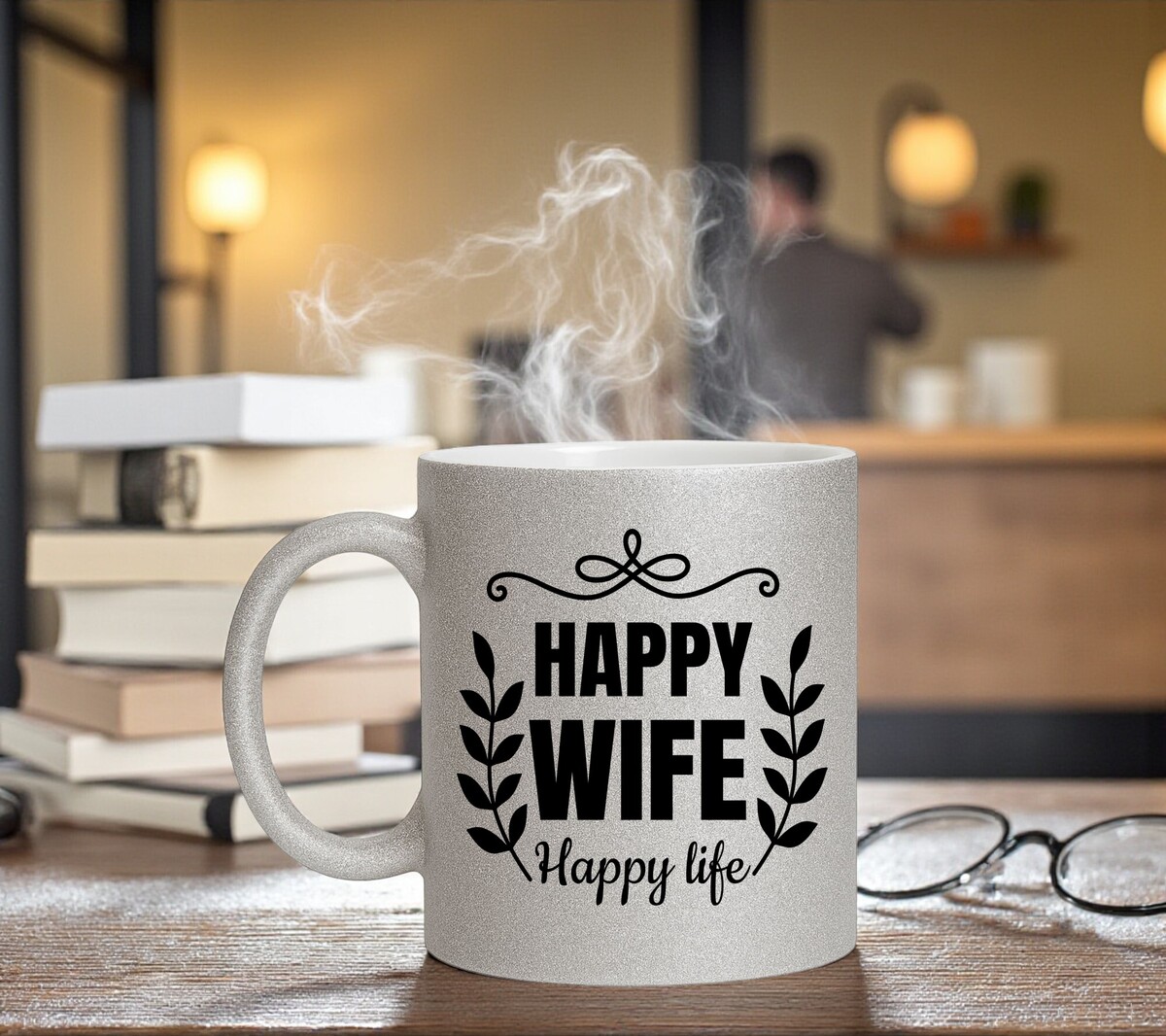 De zilveren glittermok heeft een hoogte van 96 mm, een diameter van 80 mm en een inhoud van circa 330 ml. Door de glittercoating is deze mok niet geschikt voor de magnetron en wordt handwas aanbevolen om de opdruk en glans te behouden.