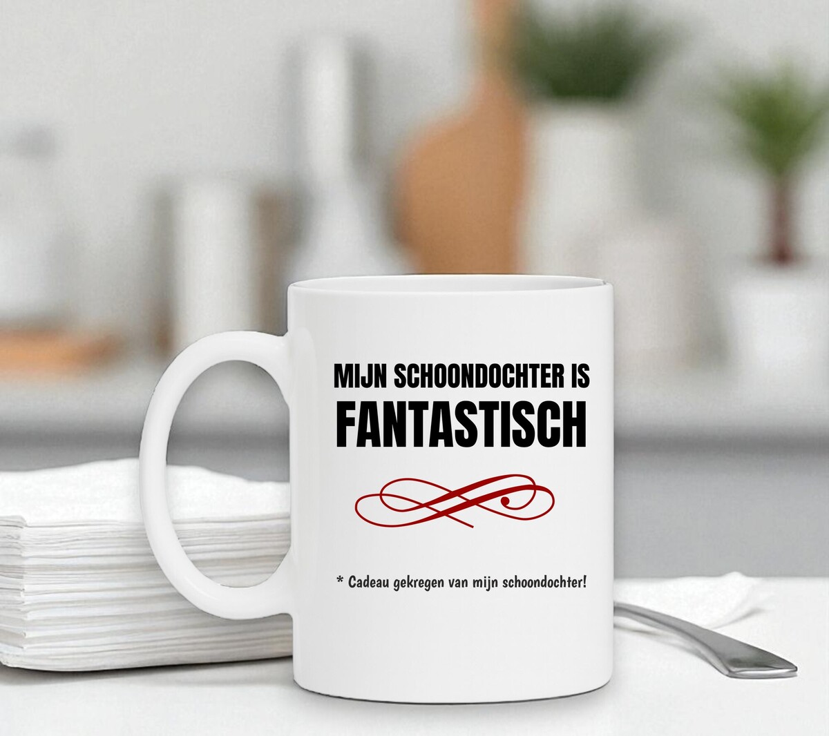 Een leuk cadeau om je schoonmoeder of schoonvader cadeau te geven! Op de mok staat de opdruk 'Mijn schoondochter is fantastisch. *cadeau gekregen schoondochter. De mok is magnetron en vaatwasserbestendig en de witte mok heeft een hoogte van 96mm en een diameter van 80mm.