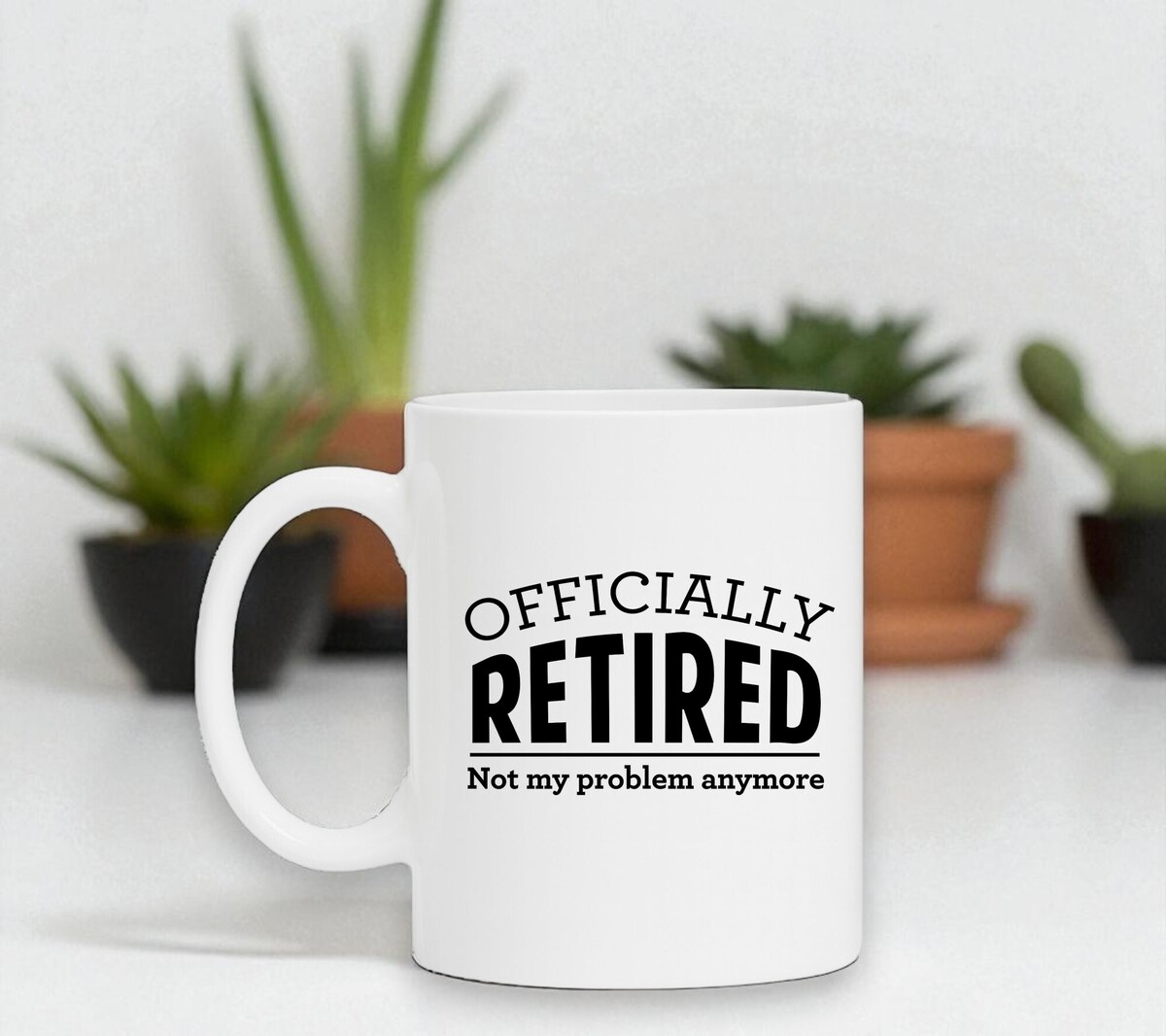 Een prachtig kado voor hem of haar die met pensioen gaat! Op de mok staat de tekst 'officially retired not my problem anymore'. De mok is vaatwasserbestendig en heeft een hoogte van 96mm en een diameter van 80mm.