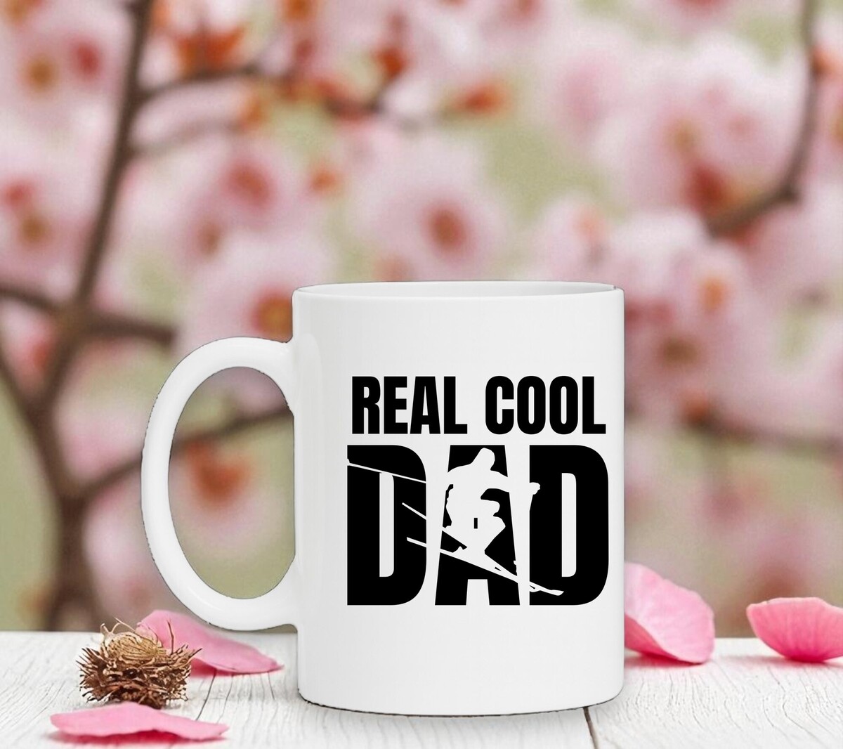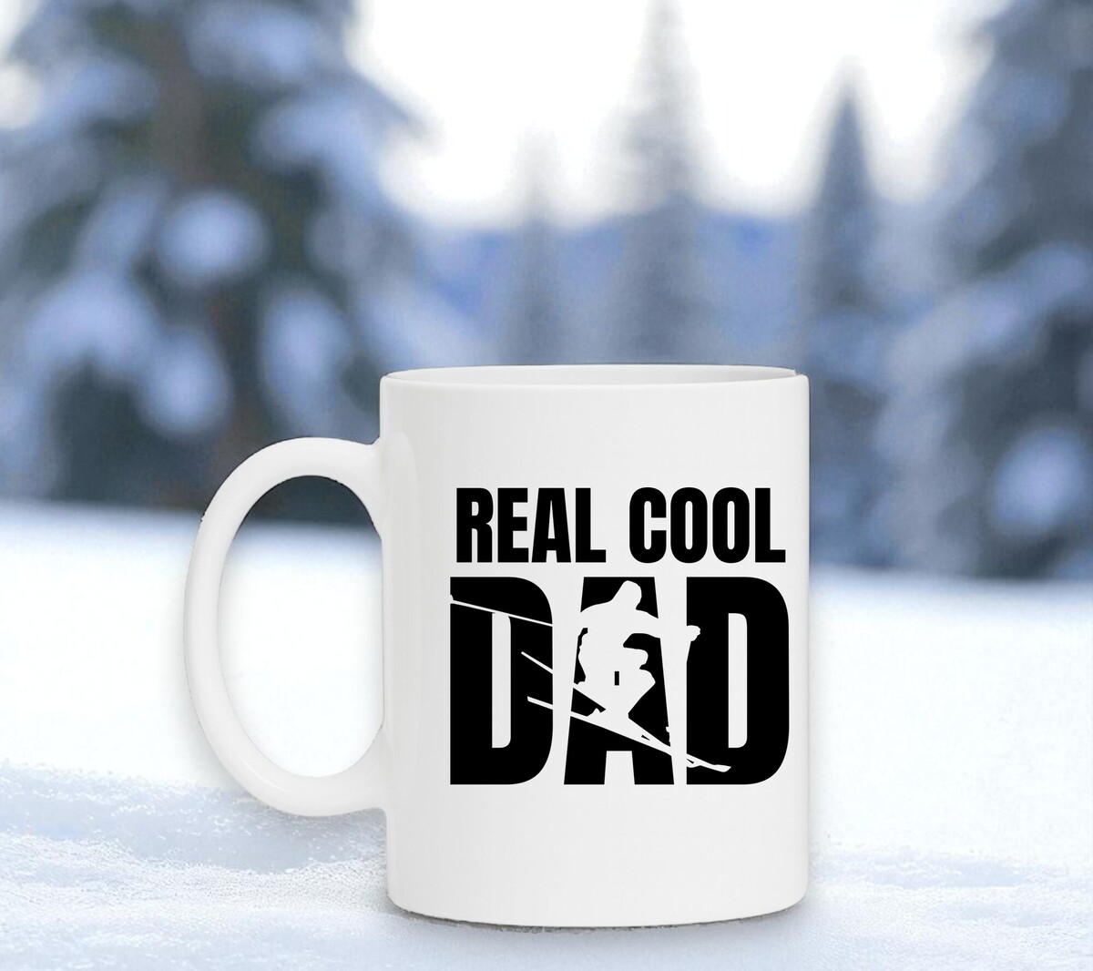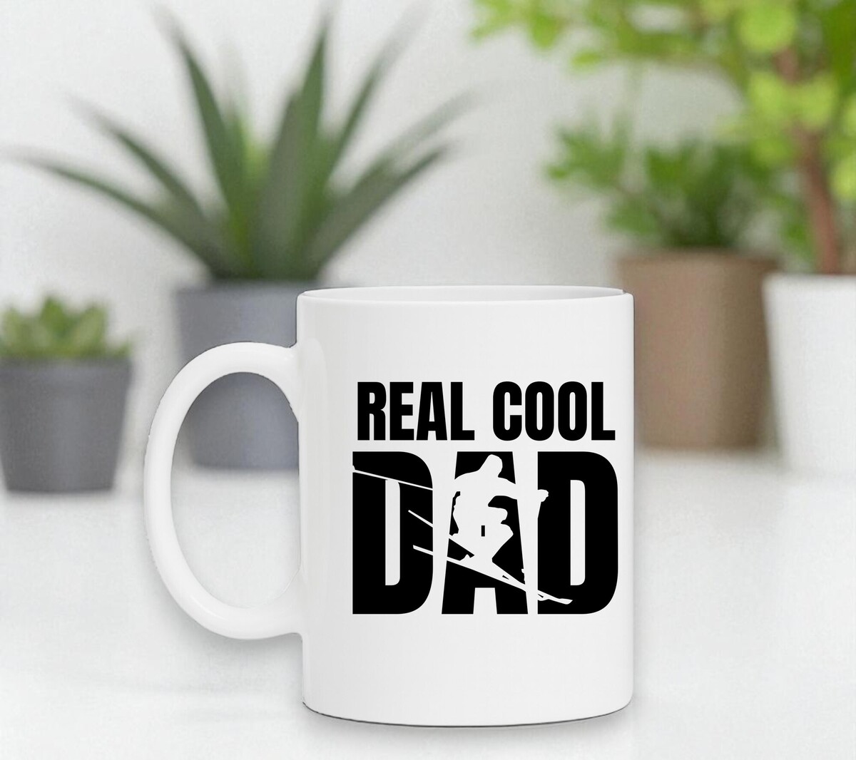 Mok real cool Dad die ski liefhebber is en vader. Een leuk cadeau om je vader te geven. De witte koffie of thee mok is vaatwasserbestendig en magnetronbestendig. De mok heeft een hoogte van 96mm en een diameter van 80mm.