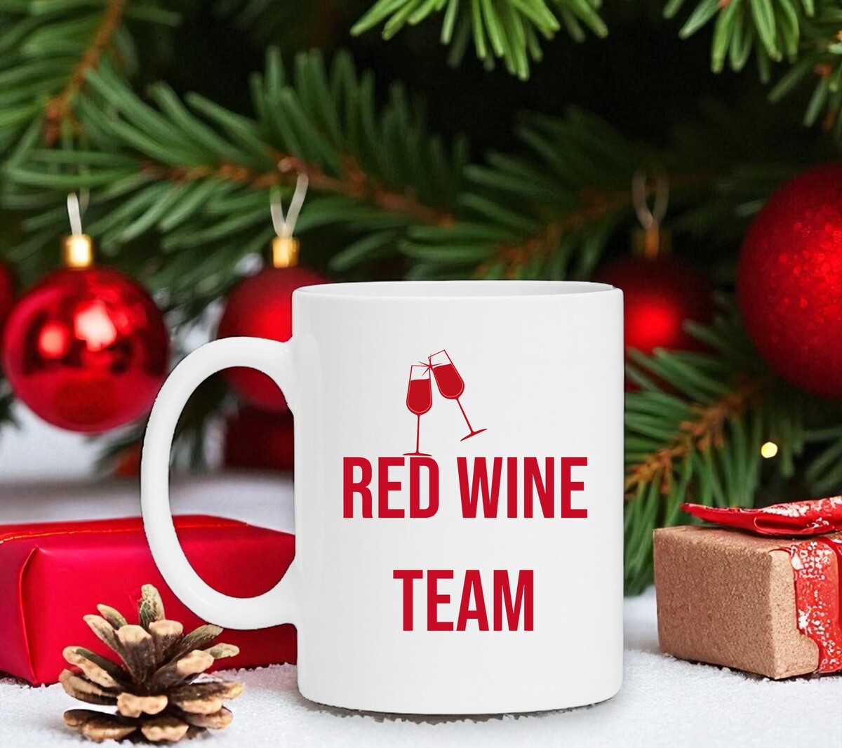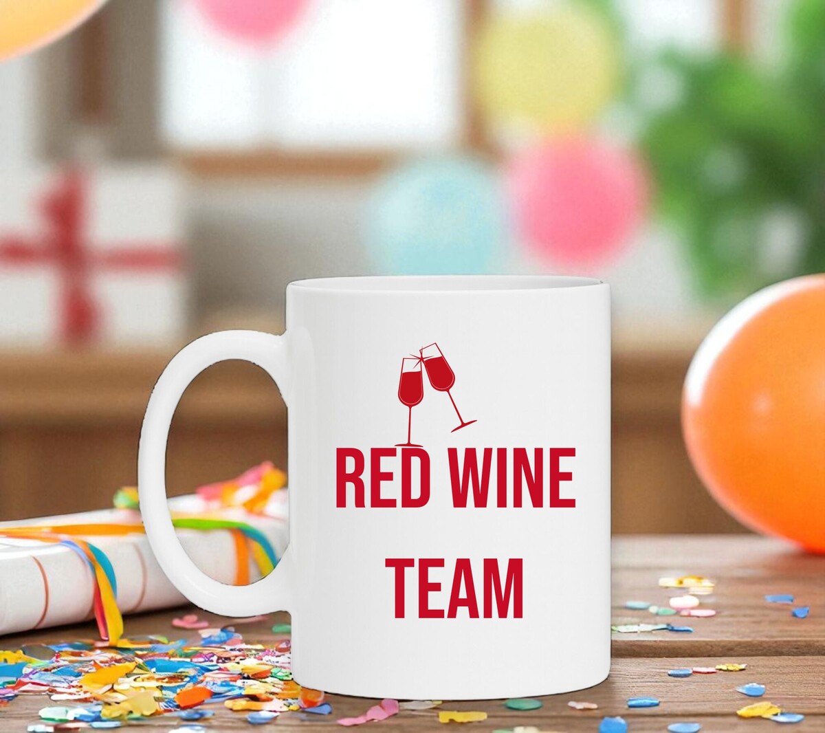 Mok red wine team. De witte koffie of thee mok is vaatwasserbestendig en magnetronbestendig. De mok heeft een hoogte van 96mm en een diameter van 80mm.
