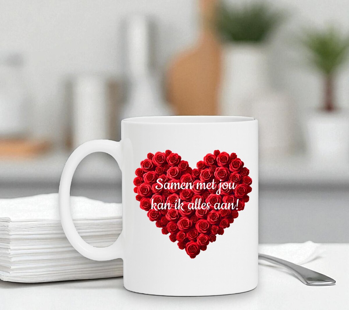 Het is mogelijk om dit artikel volledig uniek en persoonlijk te maken! Je kan volledig creatief aan de slag gaan en alles naar jouw smaak maken. Of je nu van een strakke simplistische designs houdt, gekke kleuren of van drukke prints, het is allemaal aan jou. Natuurlijk ook leuk om online te ontwerpen en weg te geven als cadeau. Of voor groepsactiviteiten waar je als één groep een eenheid wilt uitstralen. Met onze simpele ontwerptool en uitstekende service heb jij je unieke produkt snel in huis. personaliseer Mok samen met jou kan ik alles aan! Valentijn cadeau Gepersonaliseerd zijn de leukste cadeaus om te krijgen!