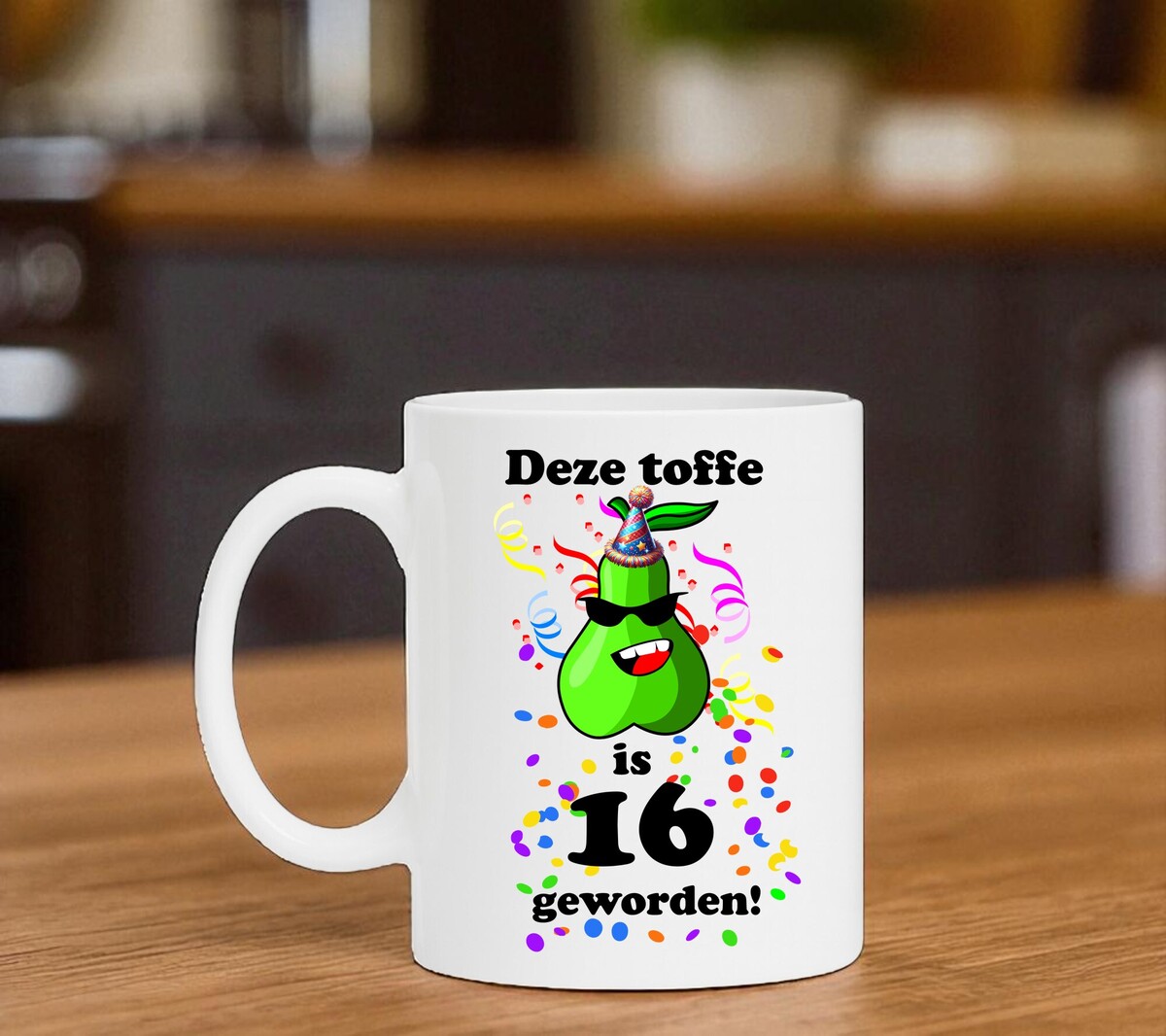 Op zoek naar een leuke en orginele mok voor iemand die 16 jaar word? dan is deze mok zeker een aanrader.