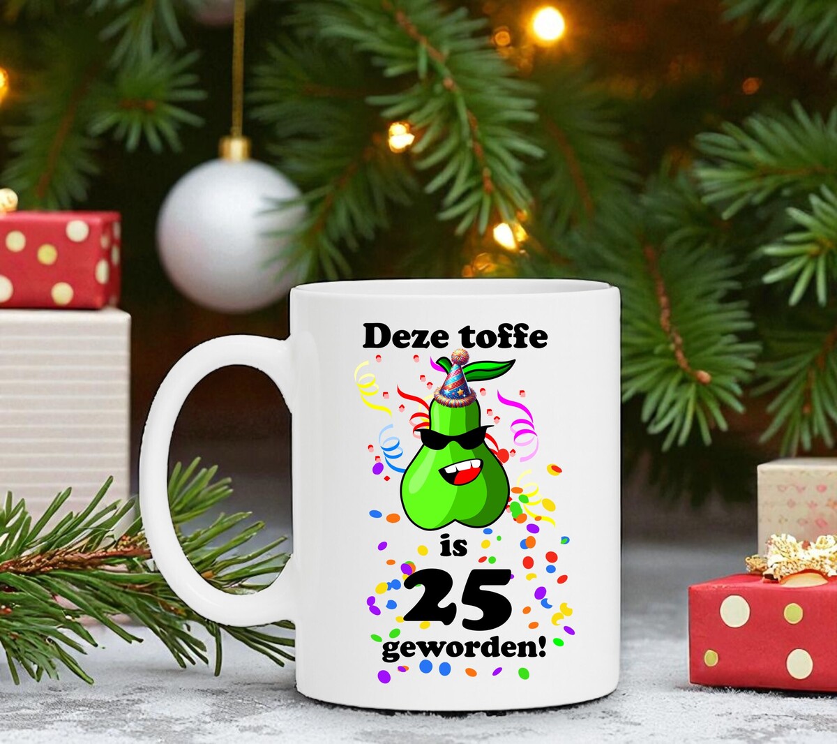 Op zoek na een leuke mok voor een verjaardag voor iemand die 25 jaar wordt? Dan is deze mok voor een toffe peer van 25 jaar zeker een aanrader.