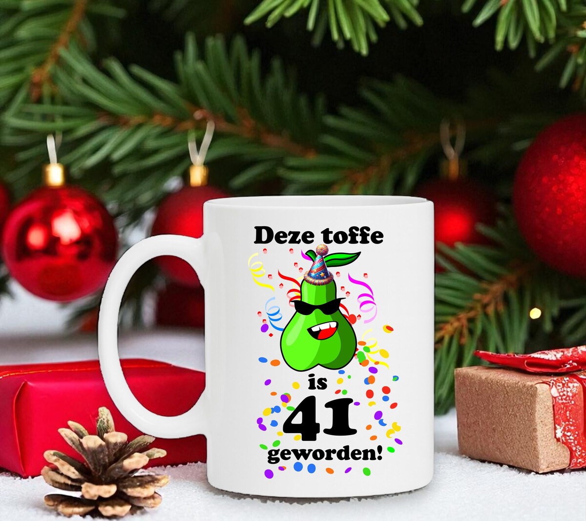 Met deze leuke verjaardag mok kun je voor de dag komen tijdens een 41e verjaardag. een erg leuk cadeau om te geven, maar ook om te krijgen wanneer iemand 41 jaar wordt.