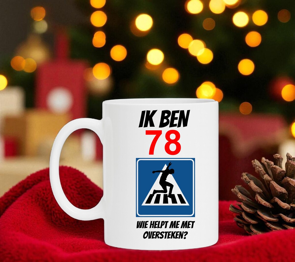 Op zoek naar een leuk kado voor een feestelijke verjaardag van 78 jaar? Dan is deze full colour bedrukte mok met humoristische tekst zeker een aanrader.