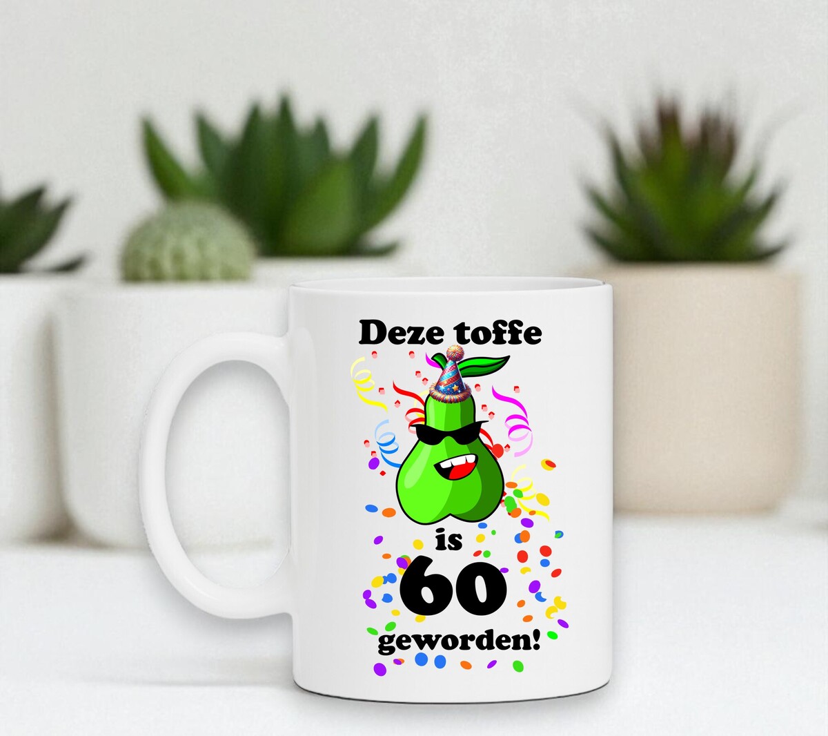 Deze mok met grappige opdruk is een leuk cadeau voor een toffe peer die 60 jaar wordt. Op zoek naar andere artikelen met 60 jaar erop? kijk gerust eens verder. We hebben in onze online feestwinkel een groot assortiment in deze leeftijd. Shirts, spreukentegels en mokken.