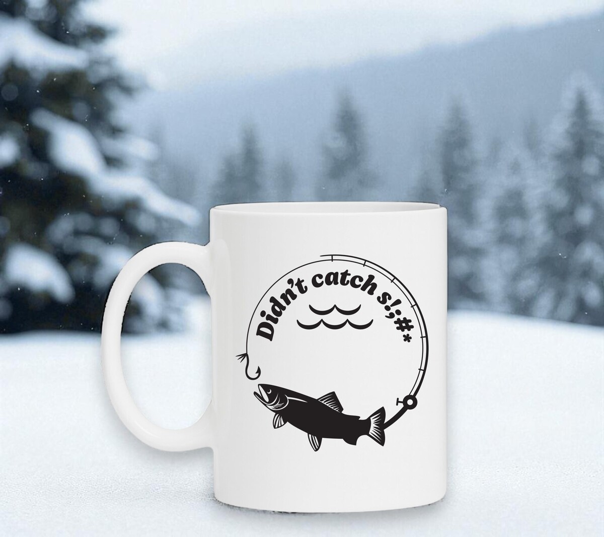 Mok voor bij het vissen met de opdruk 'Did not catch the fish' De mok is magnetron en vaatwasserbestendig en de witte mok heeft een hoogte van 96mm en een diameter van 80mm.