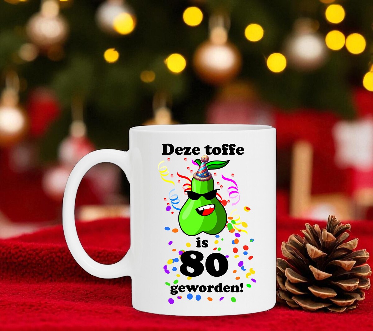 Deze koffie of thee mok is een erg grappig en leuk cadeau wanneer iemand tachtig jaar wordt. Erg leuk om te geven en te krijgen tijdens een 80e verjaardag.