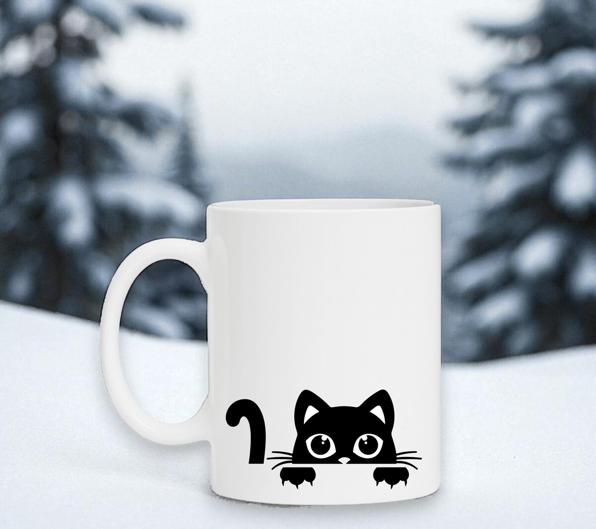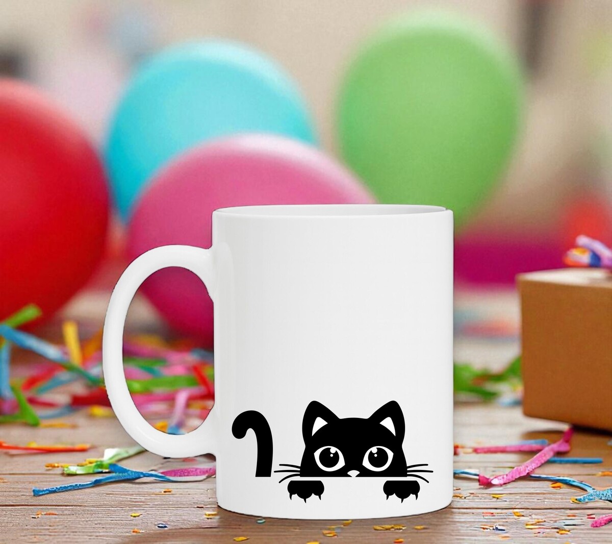 Een leuke mok voor mensen die van katten houden. Op de mok staat de opdruk van een cartoon kat getekend. De witte koffie of thee mok is vaatwasserbestendig en magnetronbestendig. De mok heeft een hoogte van 96mm en een diameter van 80mm.