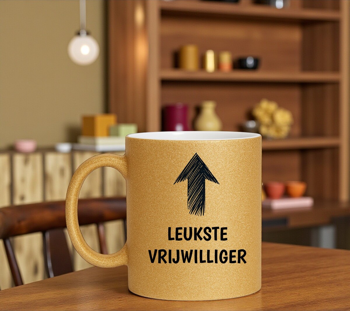 Af en toe moet je vrijwilligers weleens in het zonnetje zetten, want deze mensen zijn goud waard. Met deze glitter gouden mok laat je zien dat je de vrijwillgers in jouw organisatie erg waardeerd.