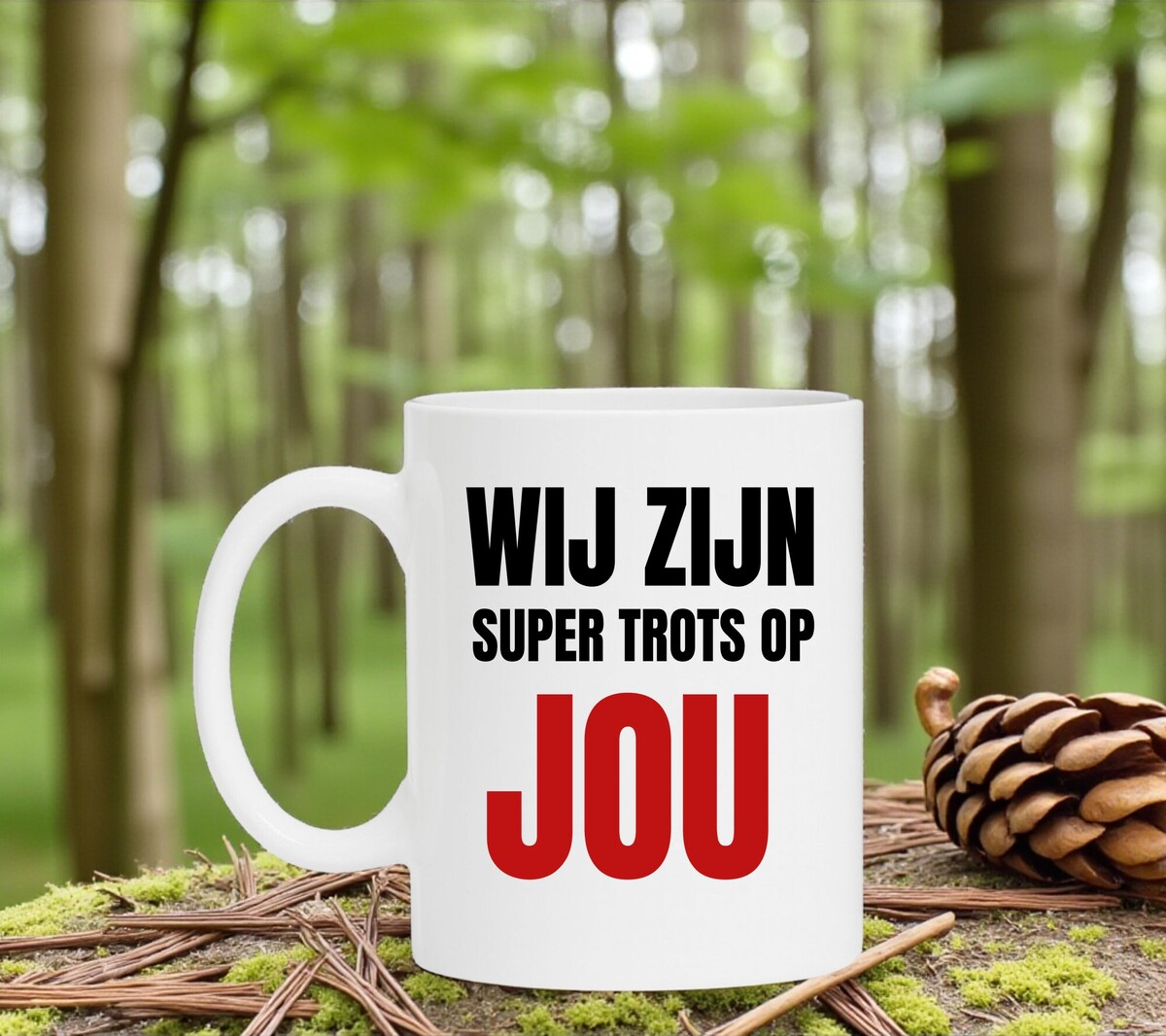 Een super leuk koffie of thee mok voor hem of haar die bijvoorbeeld geslaagd is. De mok is magnetron en vaatwasserbestendig en de witte mok heeft een hoogte van 96mm en een diameter van 80mm.