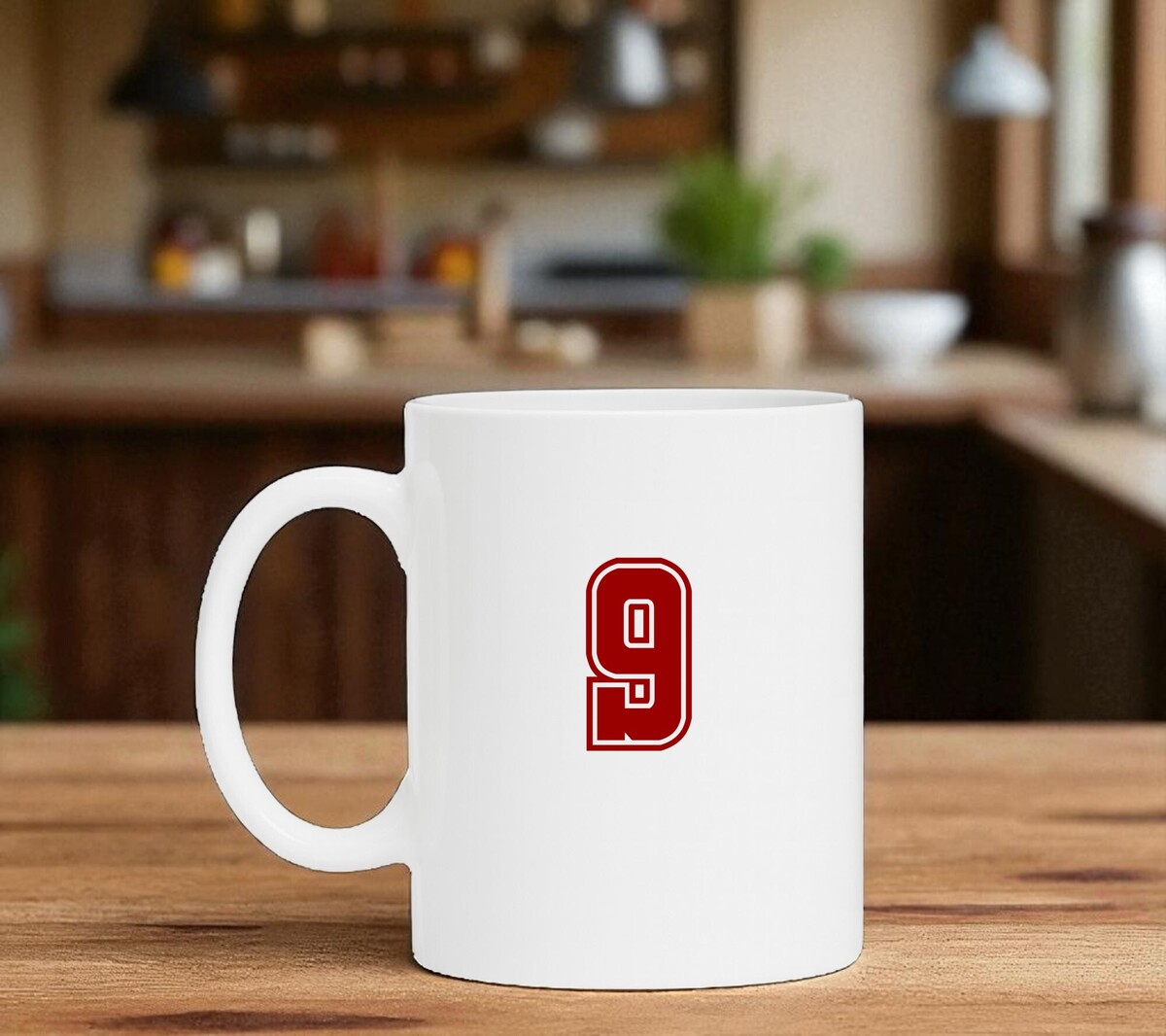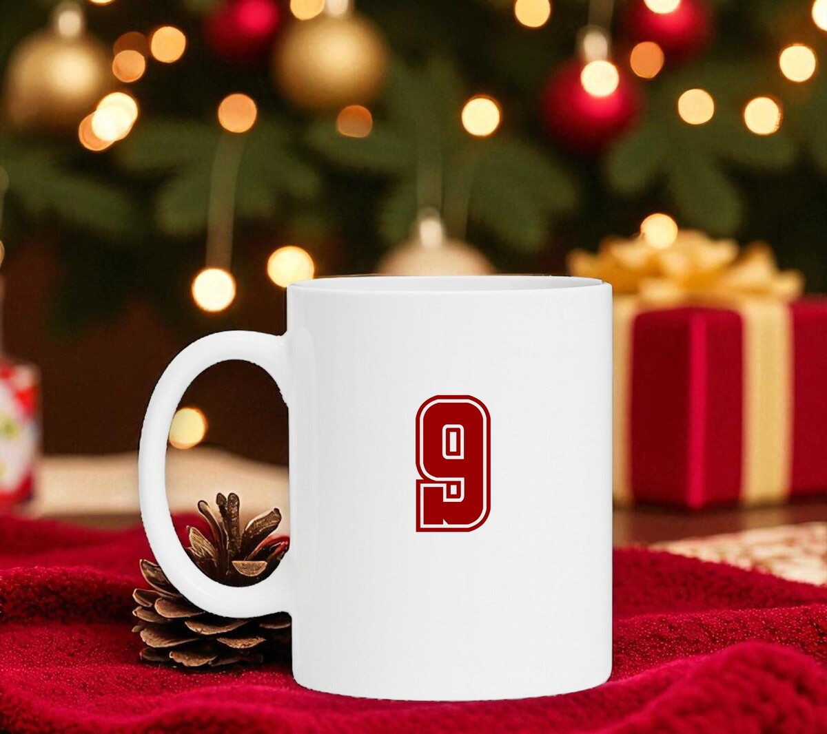 Mokje met het getal 9 erop gedrukt in het robijnrood.