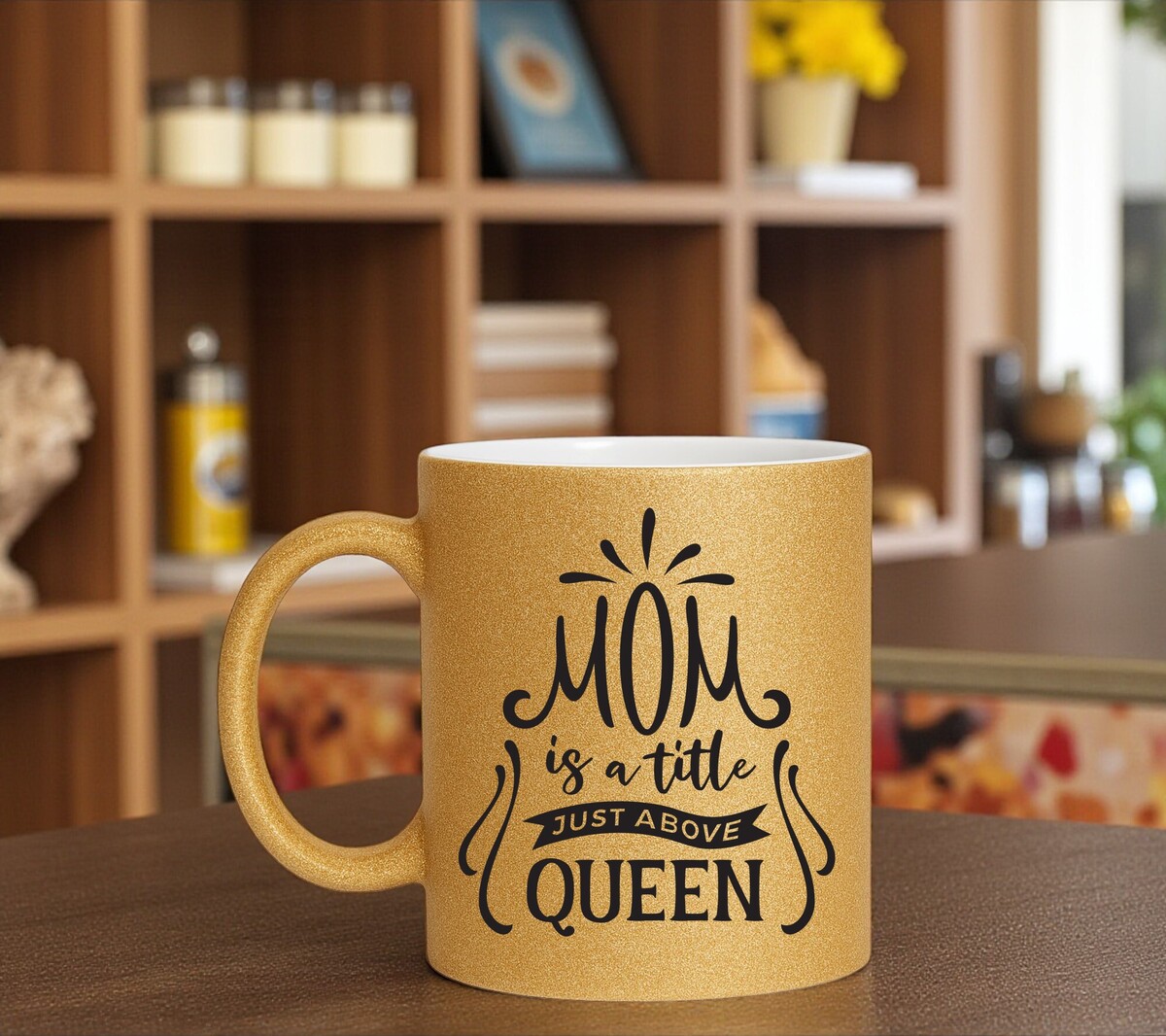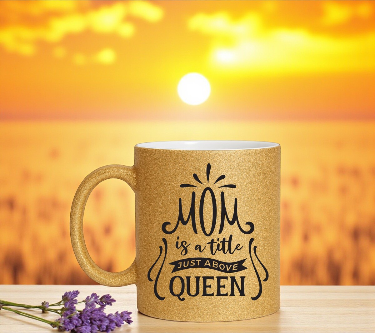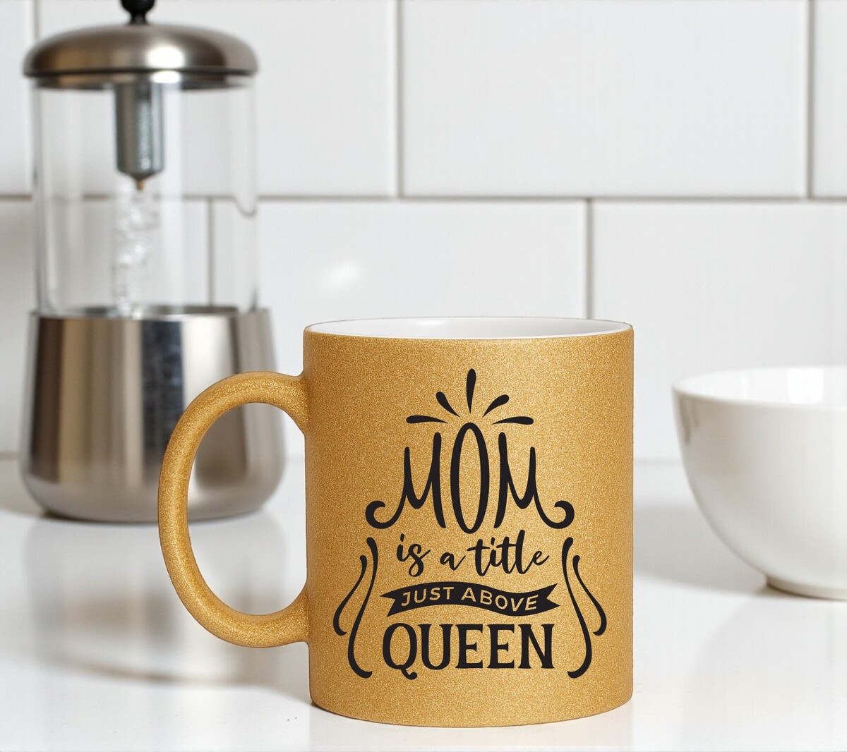Een prachtige gouden mok voor een vrouw van goud je moeder! De koffie of thee mok is voorzien van de opdruk ‘Mom is a title just above Queen’. Een erg mooi cadeau om je moeder cadeau te doen met moederdag. Jouw moeder staat op nummer 1 boven de koningin!