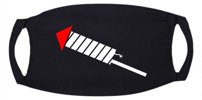 Met dit zwarte mondmasker heb je toch nog een beetje het gevoel dat je vuurwerk bij je heb! Het zwarte mondmasker is voorzien van een opdruk van een vuurpijl die net wordt aangestoken!