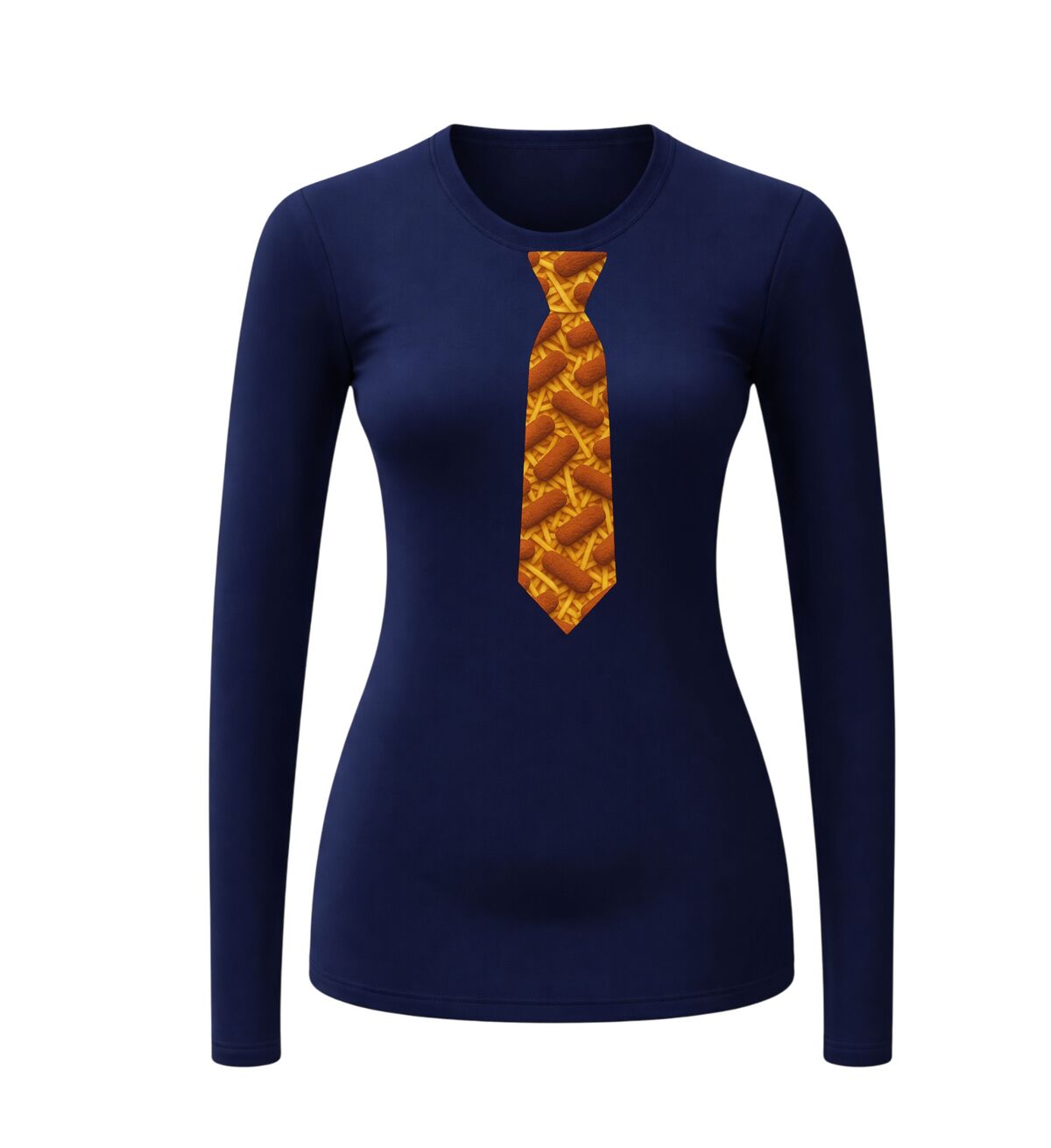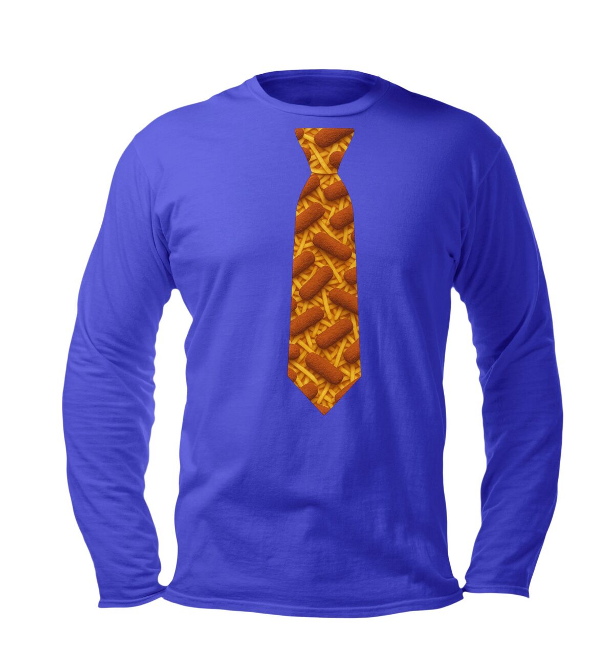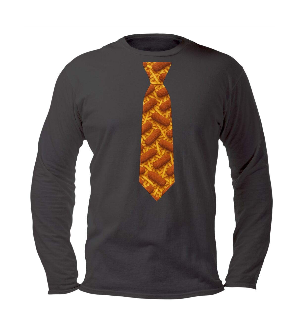 De Longsleeve met Kroketten stropdas, want echte stijl zit in de snack!