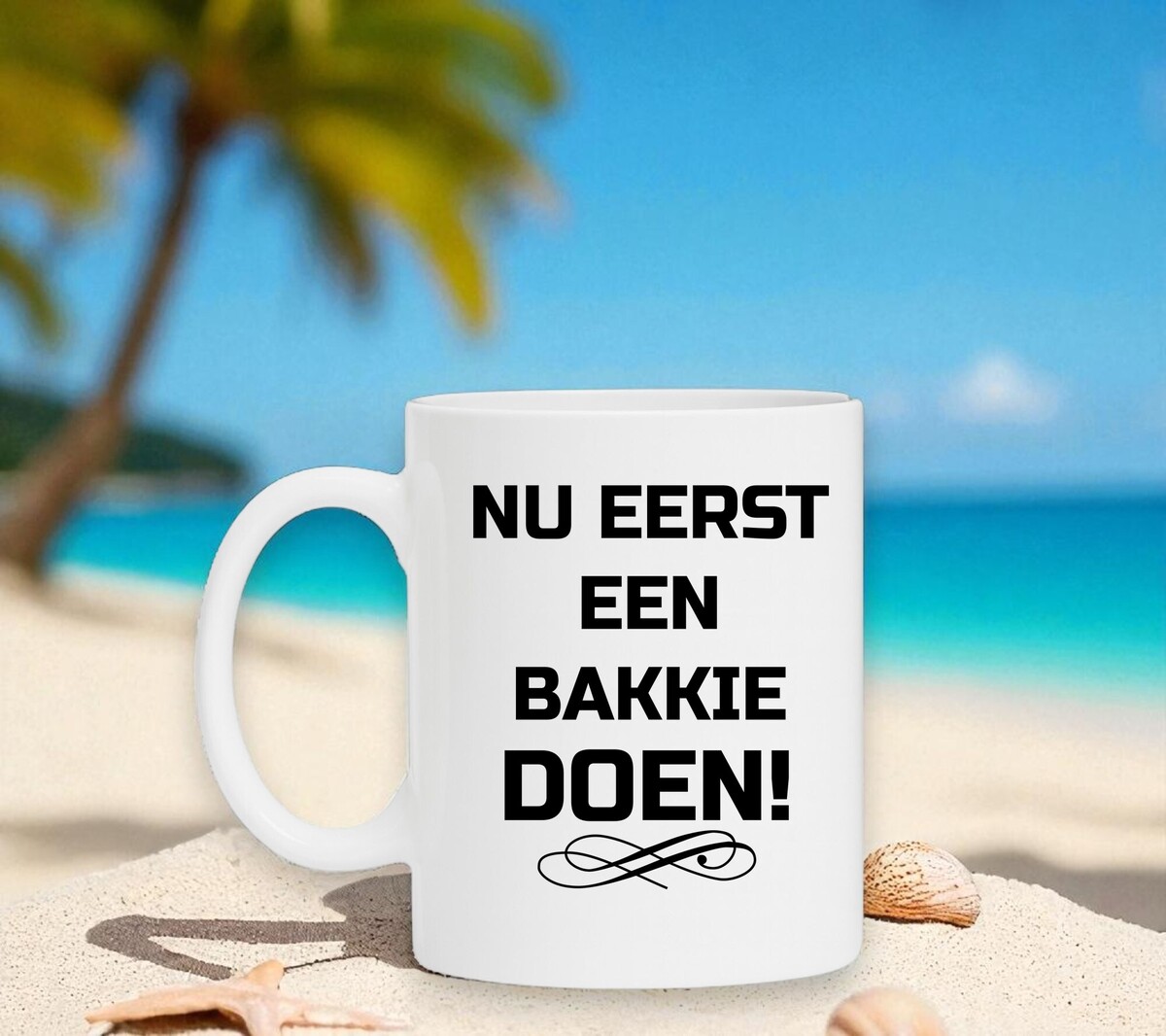 Een bakkie koffie gaat er altijd wel in. Hoe leuk is het dan niet om een mok er van te hebben waar dit op de mok staat.