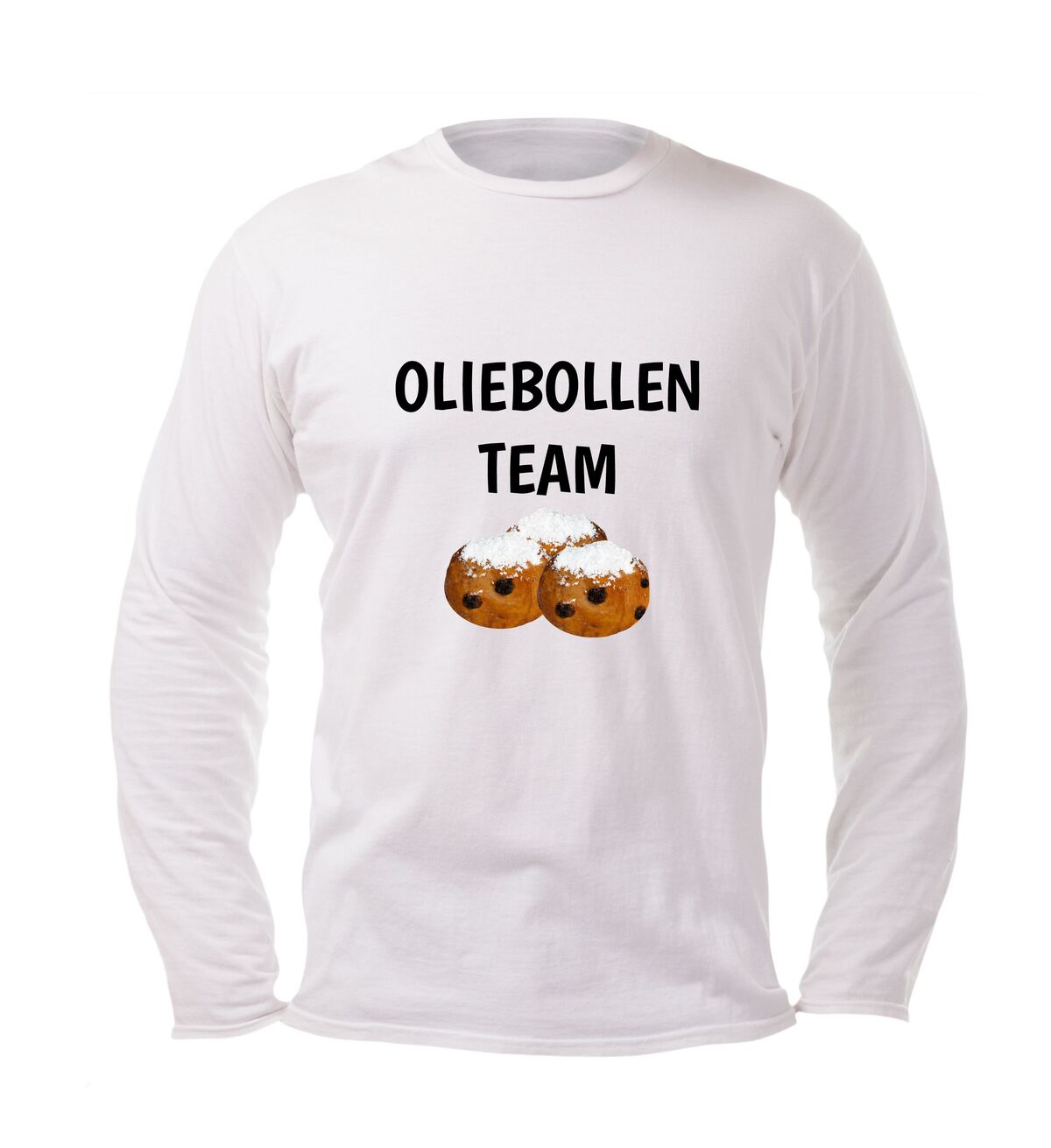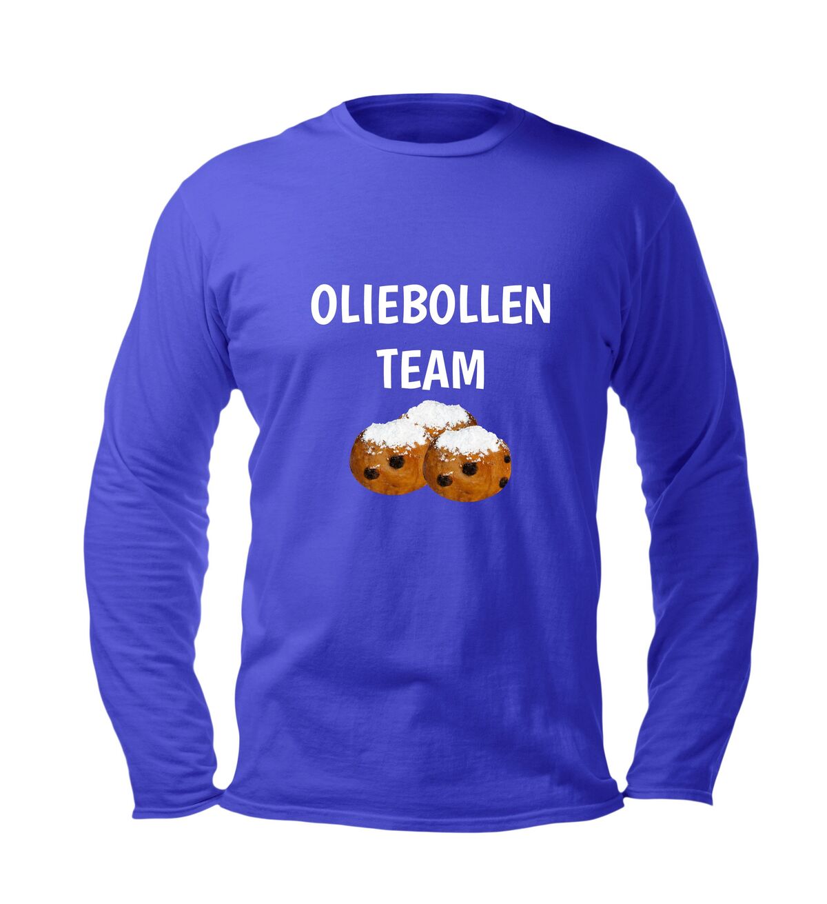 Maak van elk bakmoment een feestje met de Oliebollen Team unisex longsleeve! Deze comfortabele longsleeve is dé perfecte outfit voor iedereen die met plezier in de keuken staat tijdens de feestdagen. De herkenbare tekst “Oliebollen Team” gecombineerd met de vrolijke oliebollen-afbeelding laat meteen zien dat jij bij het team hoort.