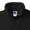 Fleece trui zwart met opstaande kraag en korte gelijk gekleurde rits. Pluisvrij en een glad oppervlak. Deze fleece is van fijn gebreid materiaal met een hoge dichtheid en biedt veel warmte bij weinig volume. Heeft 2 zijzakken met rits en ingezette mouwen. Merk:Russell Quarter Zip Outdoor Fleece. Materiaal:100% Polyester. Ditte: 320 g/m2. Land van herkomst:China. De foto van het model dient ter illustratie van de sfeer. Gelieve geen aandacht te besteden aan de kleur.