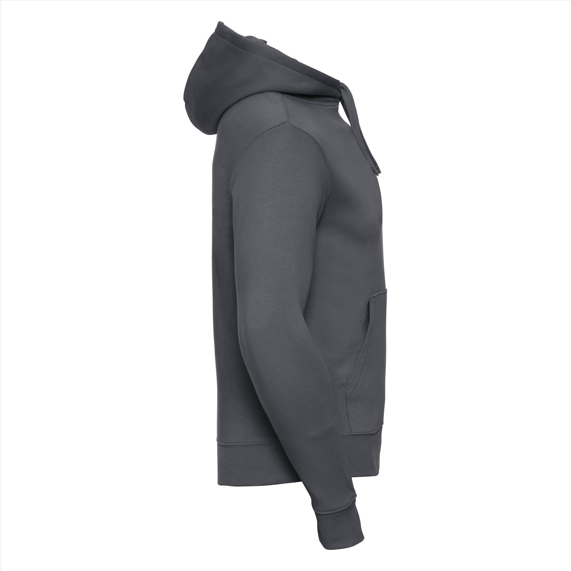 Donker grijze Sweatshirt met dubbellaags capuchon met vlakke en brede koordjes en een recht model voor hedendaagse look. Hele fijne heren sweater met uitstekende pasvorm en met de buitenste laag van 100% katoen voor een betere printbaarheid en trendy kangoeroezak. Is een ideale sweat om casual te dragen maar kan ook zeker op de werkvloer. Merk: Russel. Materiaal: 80% Combed Ringspun Cotton - 20% Polyester Dikte: 280 g/m2. Land van herkomst:Egypt.