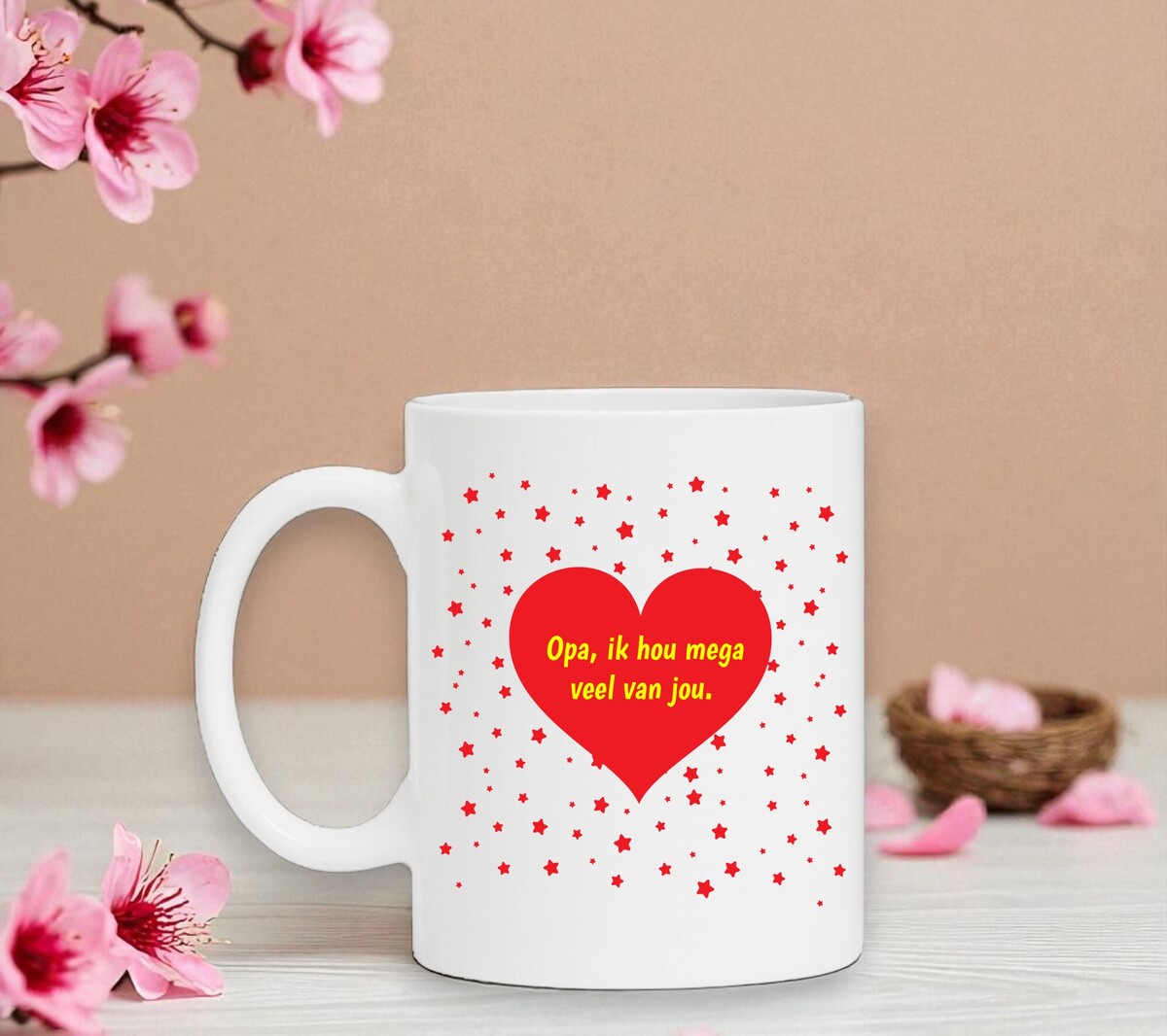 Een lieve koffiemok om jou opa cadeau te geven met zijn verjaardag bijvoorbeeld. Op de koffiemok staat de tekst 'Opa ik hou mega veel van jou.'