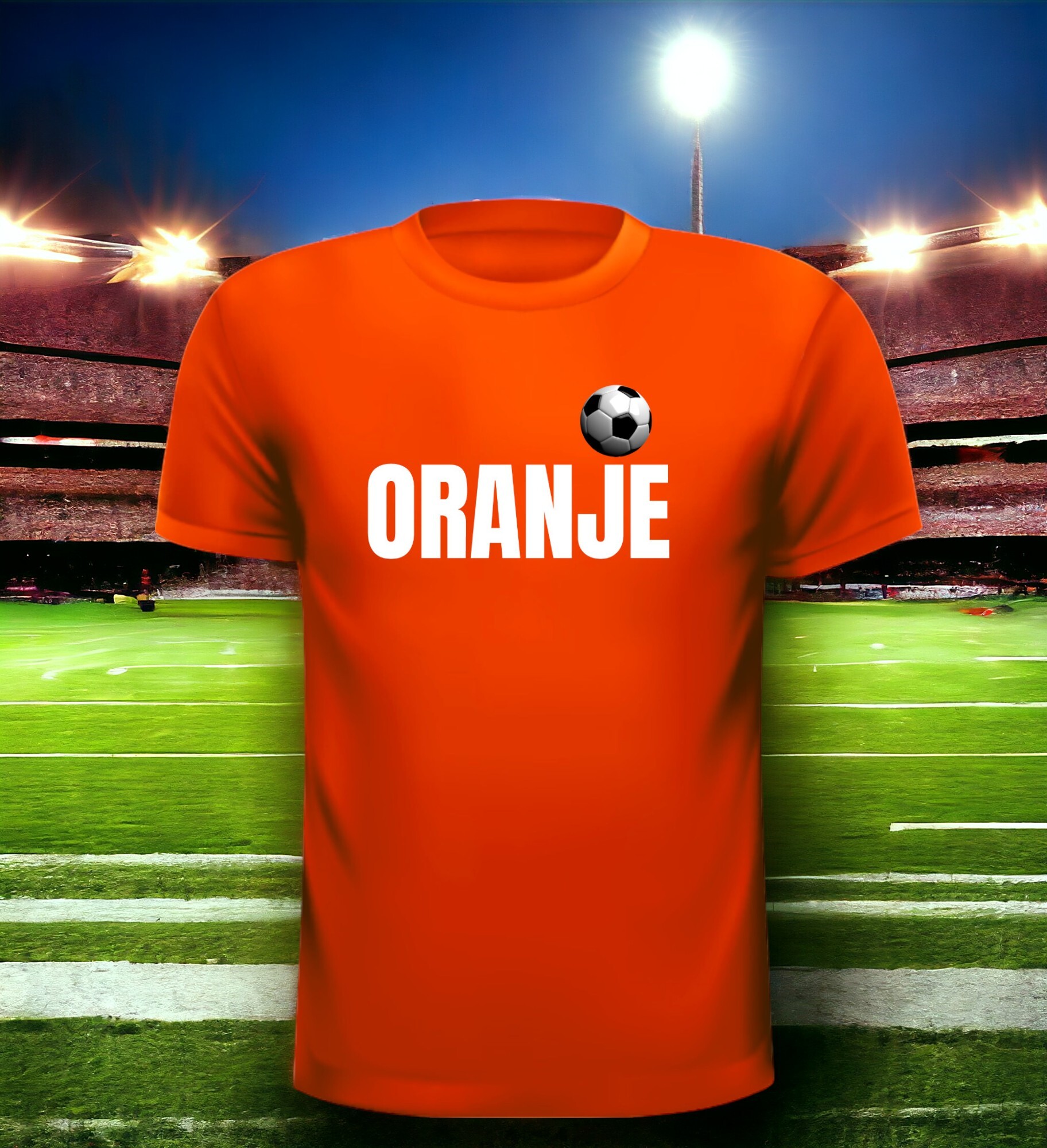 Laat je steun voor Oranje zien tijdens het EK 2024 met dit unieke oranje voetbalshirt! Perfect voor elke voetbalfan, dit shirt springt eruit door de creatieve twist: de tekst 'Oranje' op de voorkant, waarbij het puntje op de 'i' slim is vervangen door een voetbal. Dit design maakt het shirt niet alleen een feestelijke, maar ook een speelse toevoeging aan je EK-garderobe.