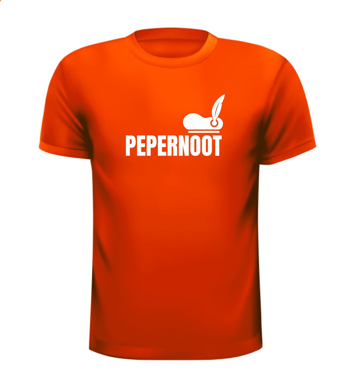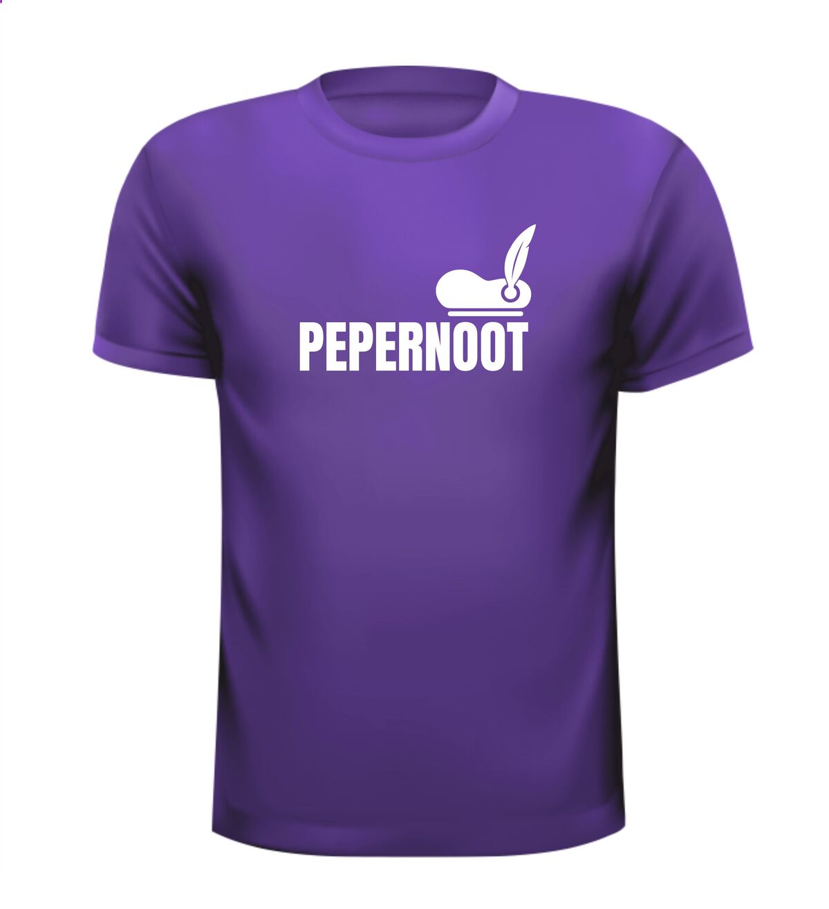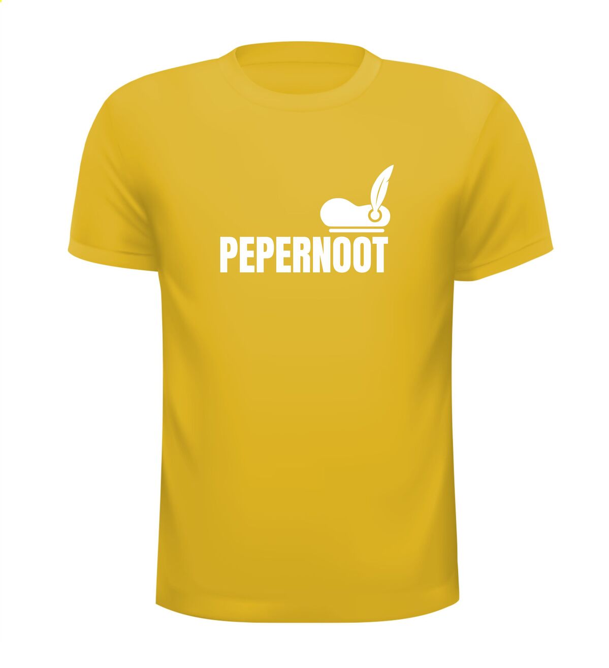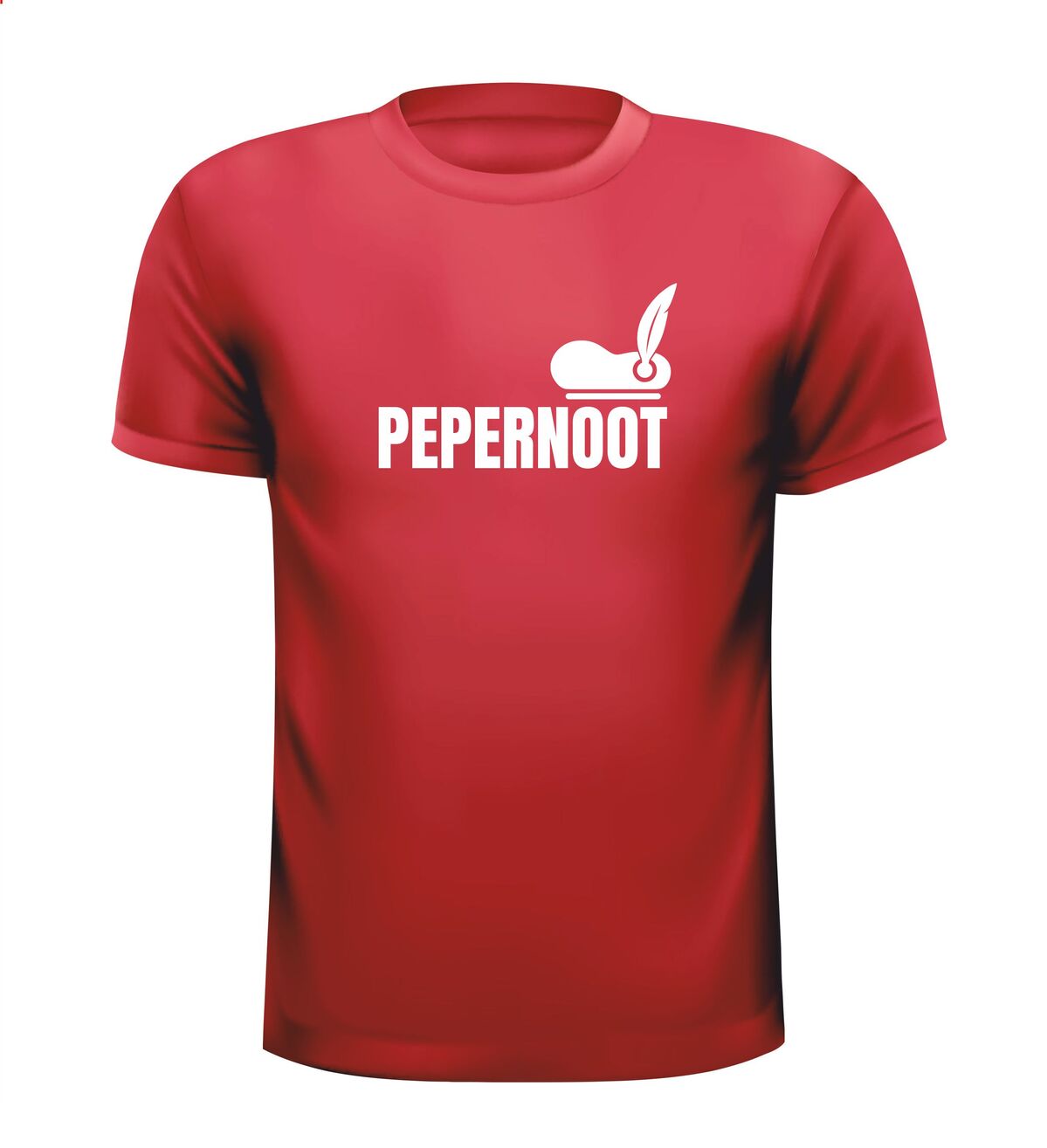 Sinterklaas design T-shirt in een mooi font het woord pepernoot geschreven. Leuk om te dragen als je stijlvol voor de dag wilt komen.