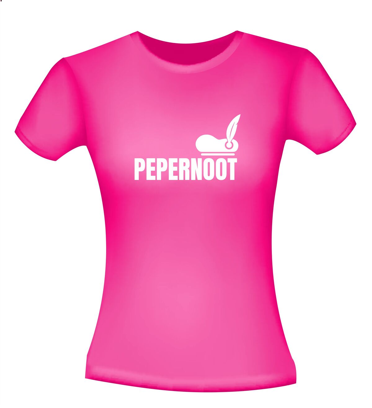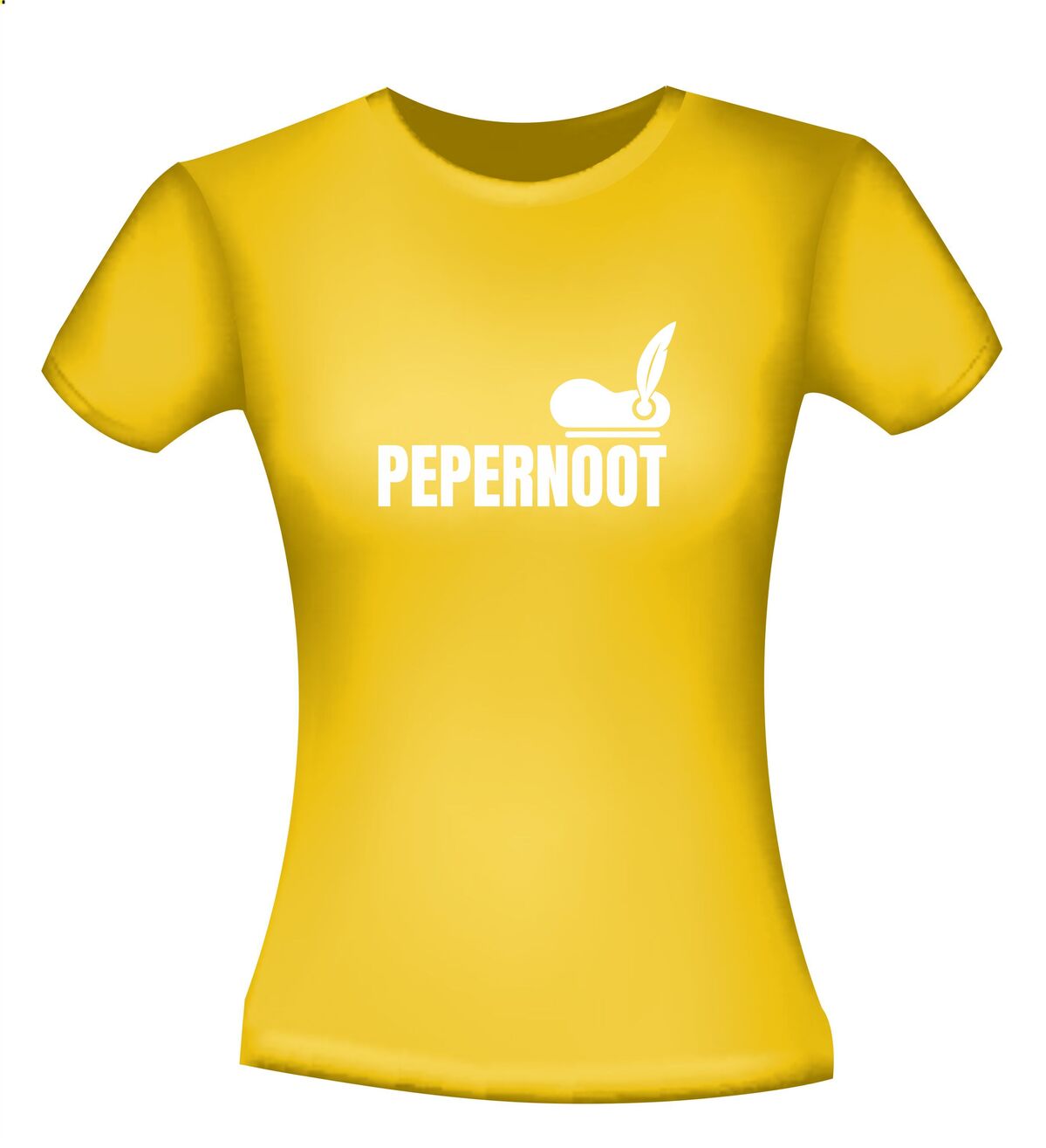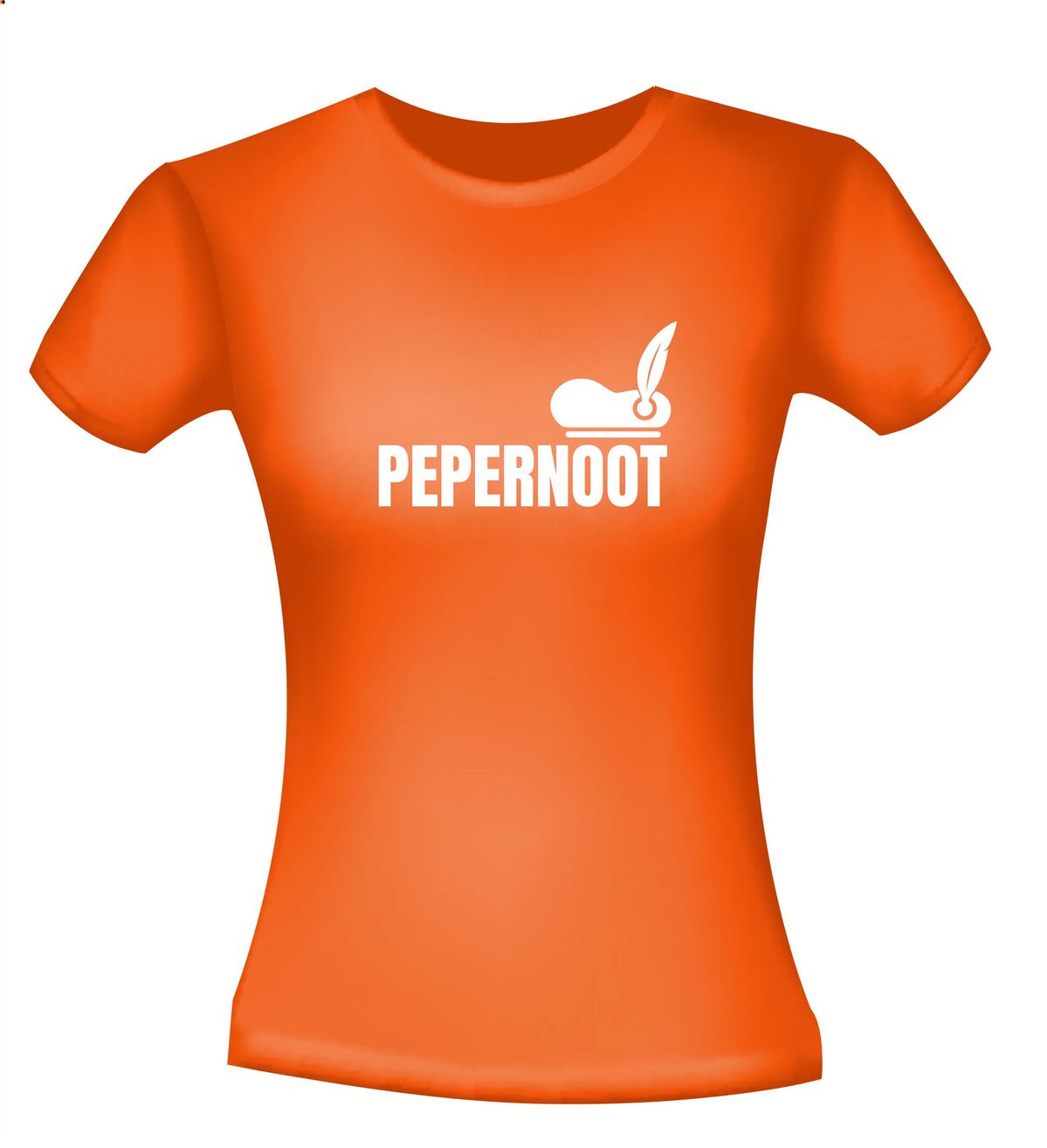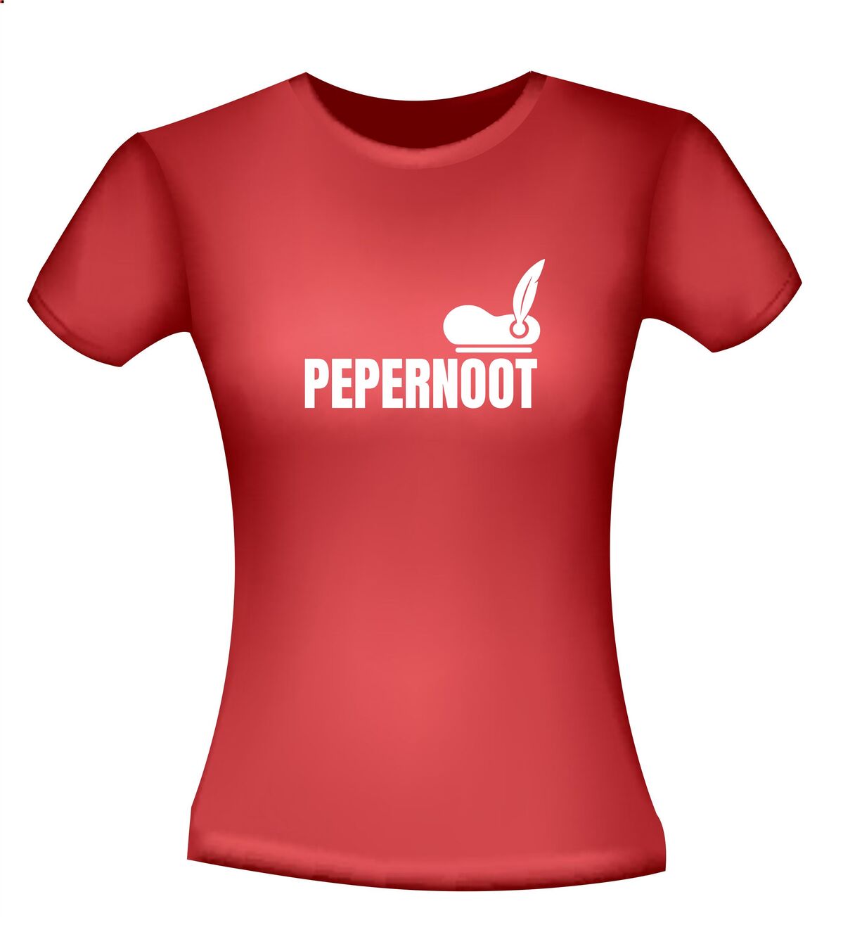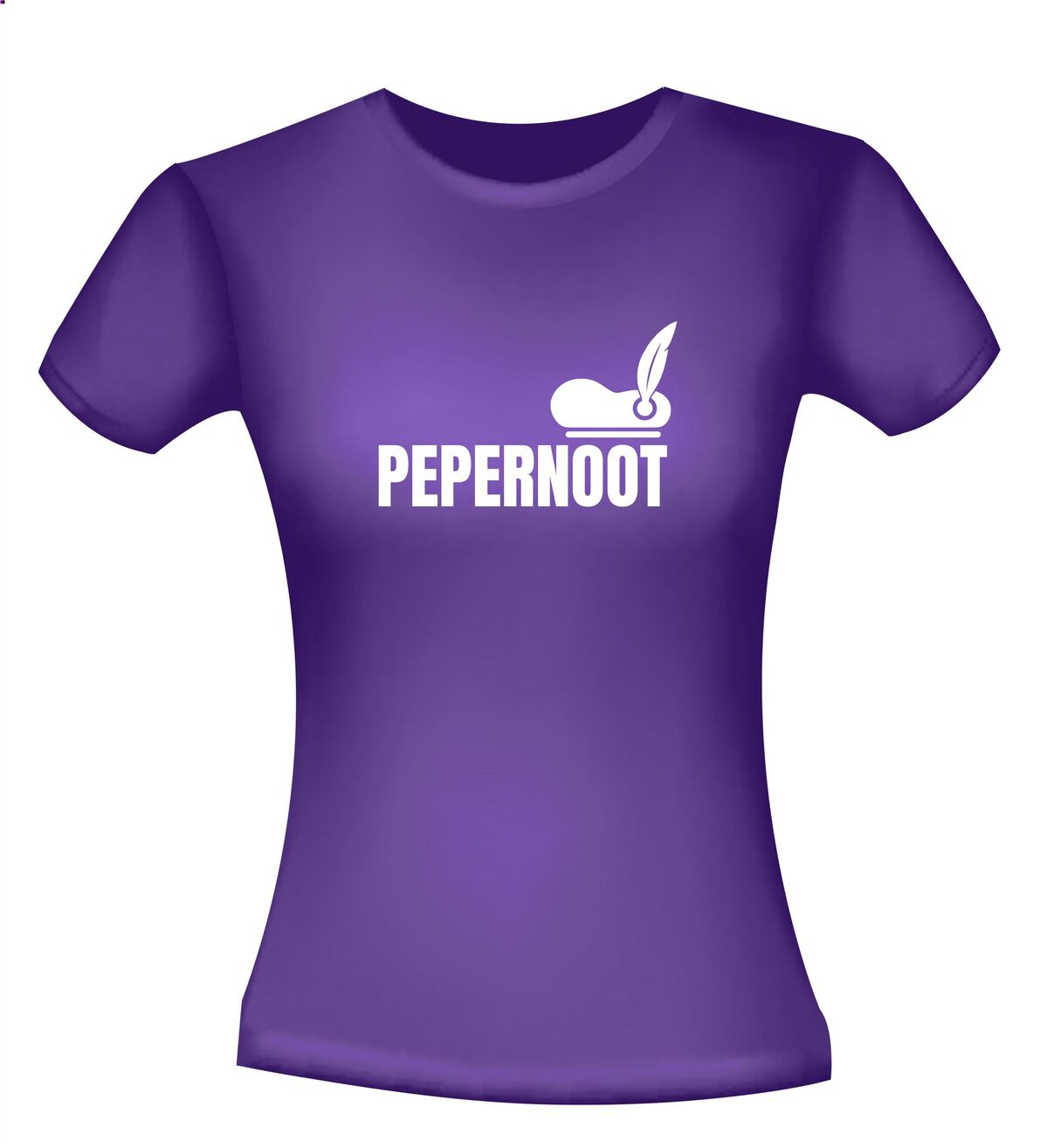 Sinterklaas design T-shirt in een mooi font het woord pepernoot geschreven. Leuk om te dragen als je stijlvol voor de dag wilt komen.