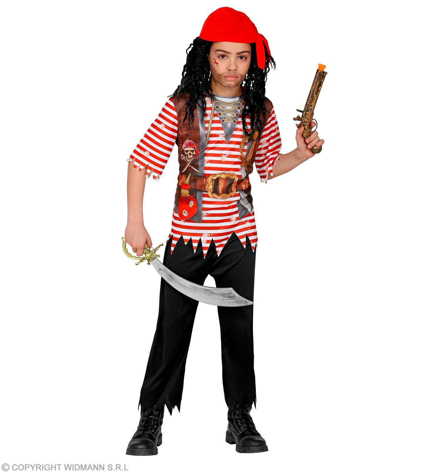 Een prachtig piraten pak bestaande uit; shirt, broek, bandana.  Zo kom je goed voor de dag als piraat!