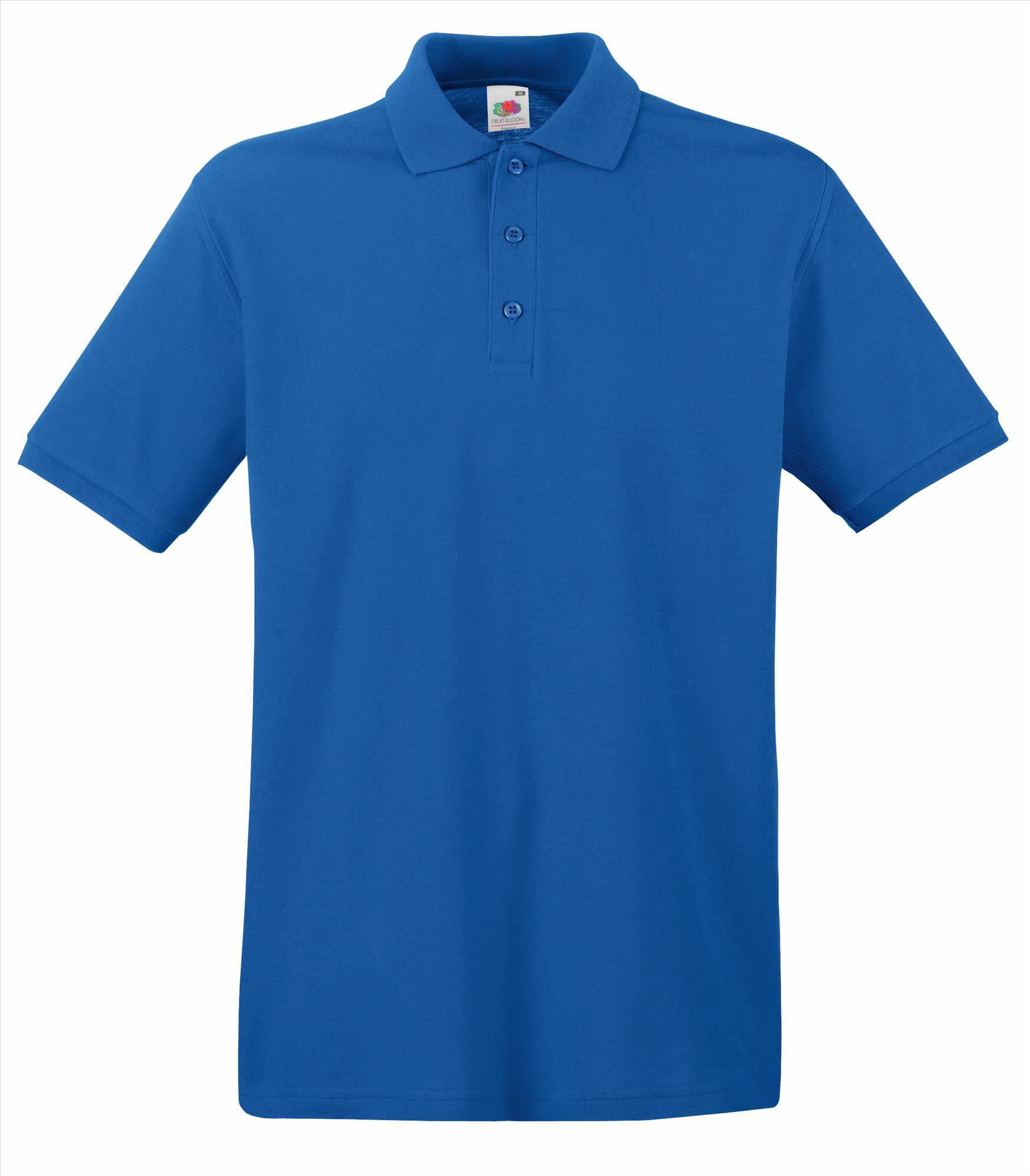 Polo voor heren royal blauw. Korte mouw. De polo's zijn te personaliseren al vanaf 1 stuks. Geen opstartkosten! Polo met 3 knoopjes in dezelfde kleur. Dikte:170 g/m2. Merk:Fruit of the Loom Premium Polo 632180. Piqué. Met zijsplitjes. 1x1 ribgebreide manchetten en kraag. Materiaal:100% katoen. Foto met model erop is een sfeer foto kleur buiten beschouwing houden. Land van herkomst:Morocco.
