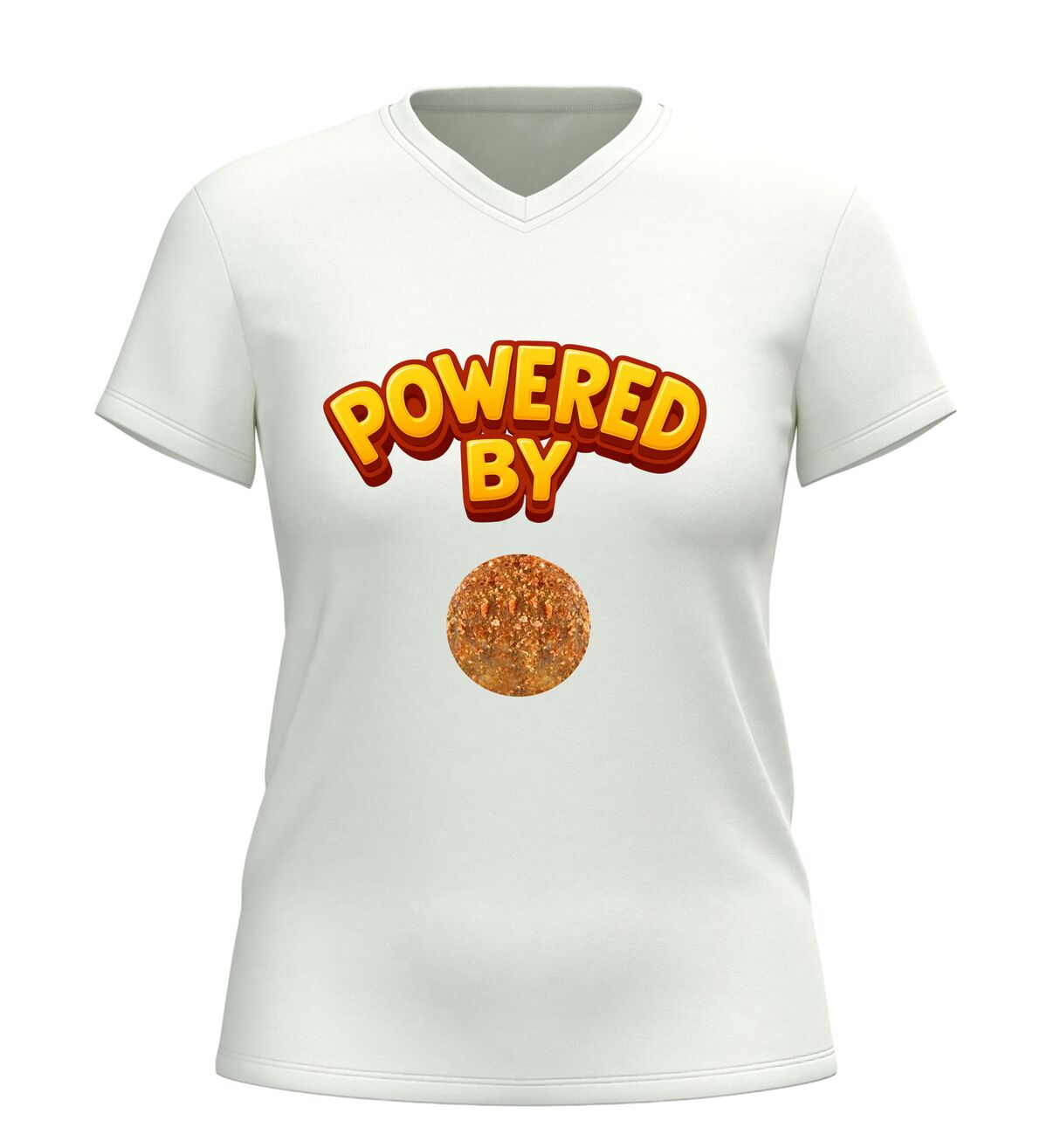 Dit V-hals T-shirt met de tekst powered by Bitterbal en een vrolijke bitterbal-opdruk is perfect voor iedereen die energie haalt uit de Nederlandse borrelklassieker. Het ontwerp combineert humor met herkenning en is een knipoog naar de gezellige snackcultuur. Ideaal voor borrels, feestjes, festivals of gewoon als comfortabel shirt voor dagelijks gebruik.