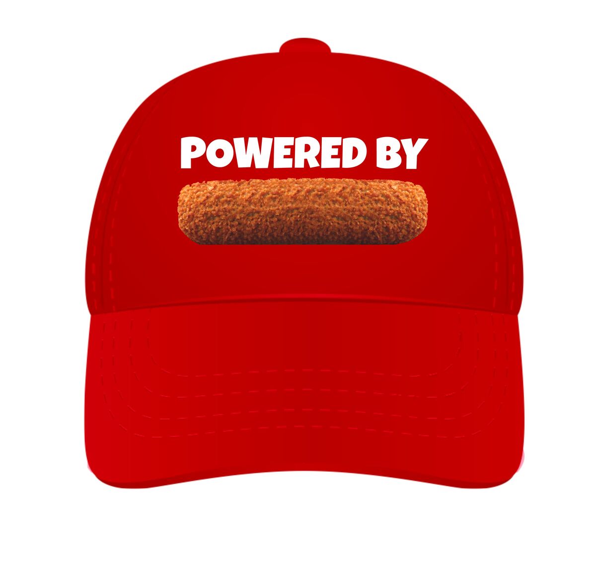 Powered by Kroket pet. Kort, krachtig en met een glimlach — dit petje zegt alles zonder een woord te veel. Powered by Kroket: voor de liefhebber die z’n prioriteiten kent. Perfect voor op het terras, in de snackbar of gewoon wanneer je zin hebt om te laten zien wat jou écht draaiende houdt.Kort, krachtig en met een glimlach — dit petje zegt alles zonder een woord te veel.