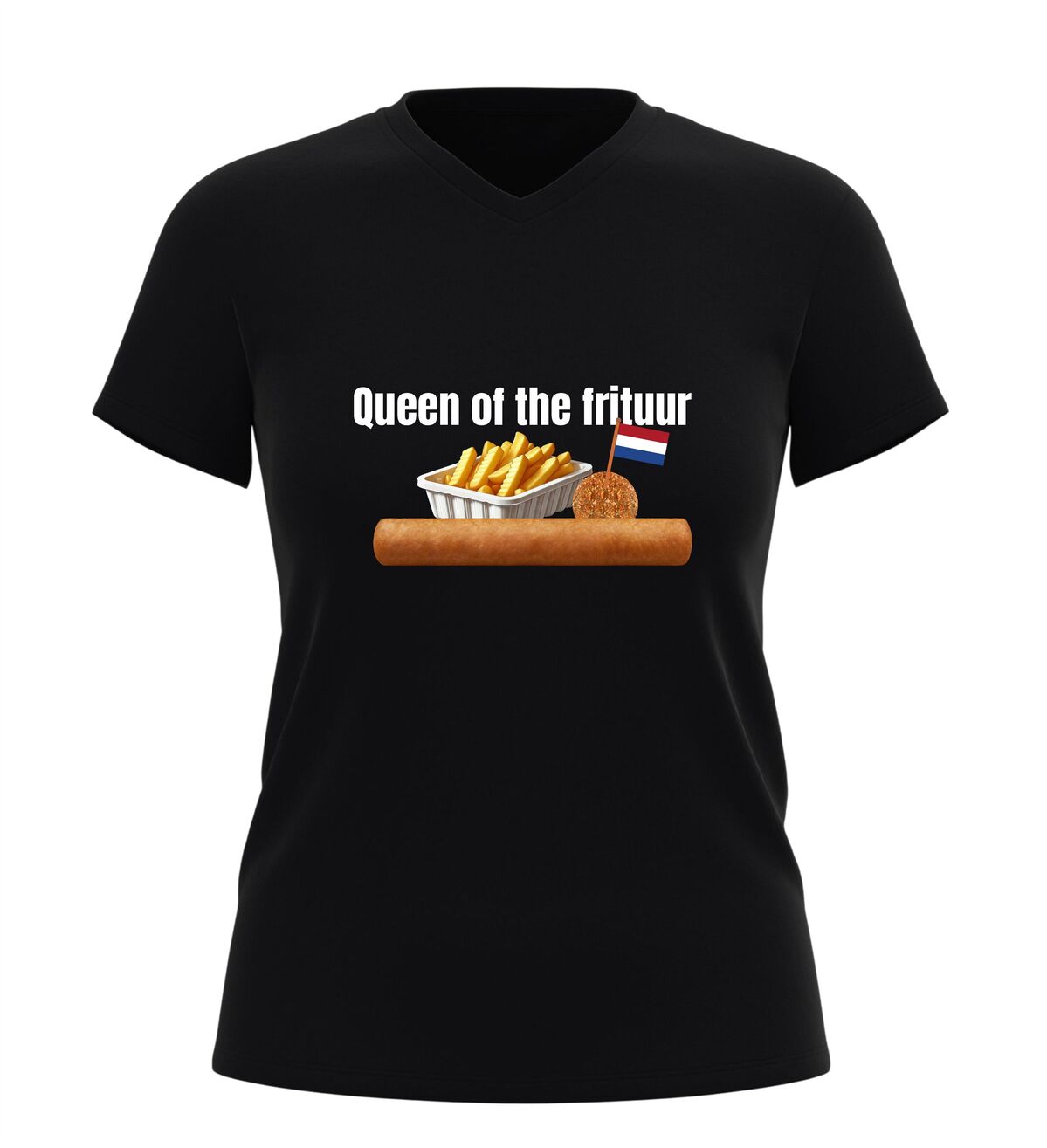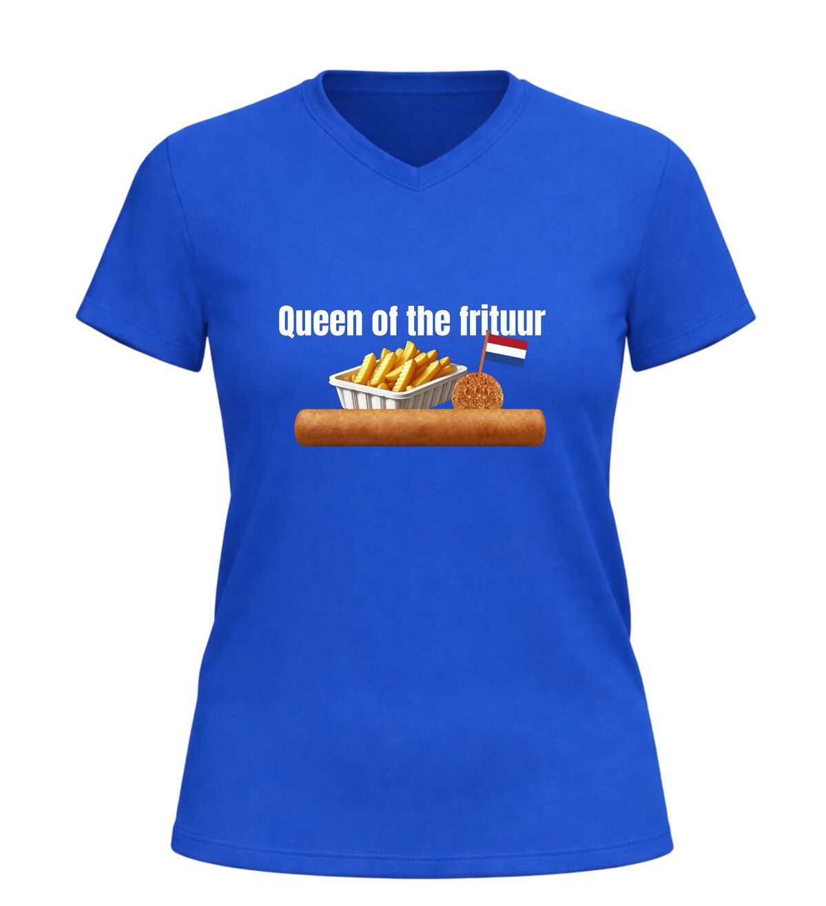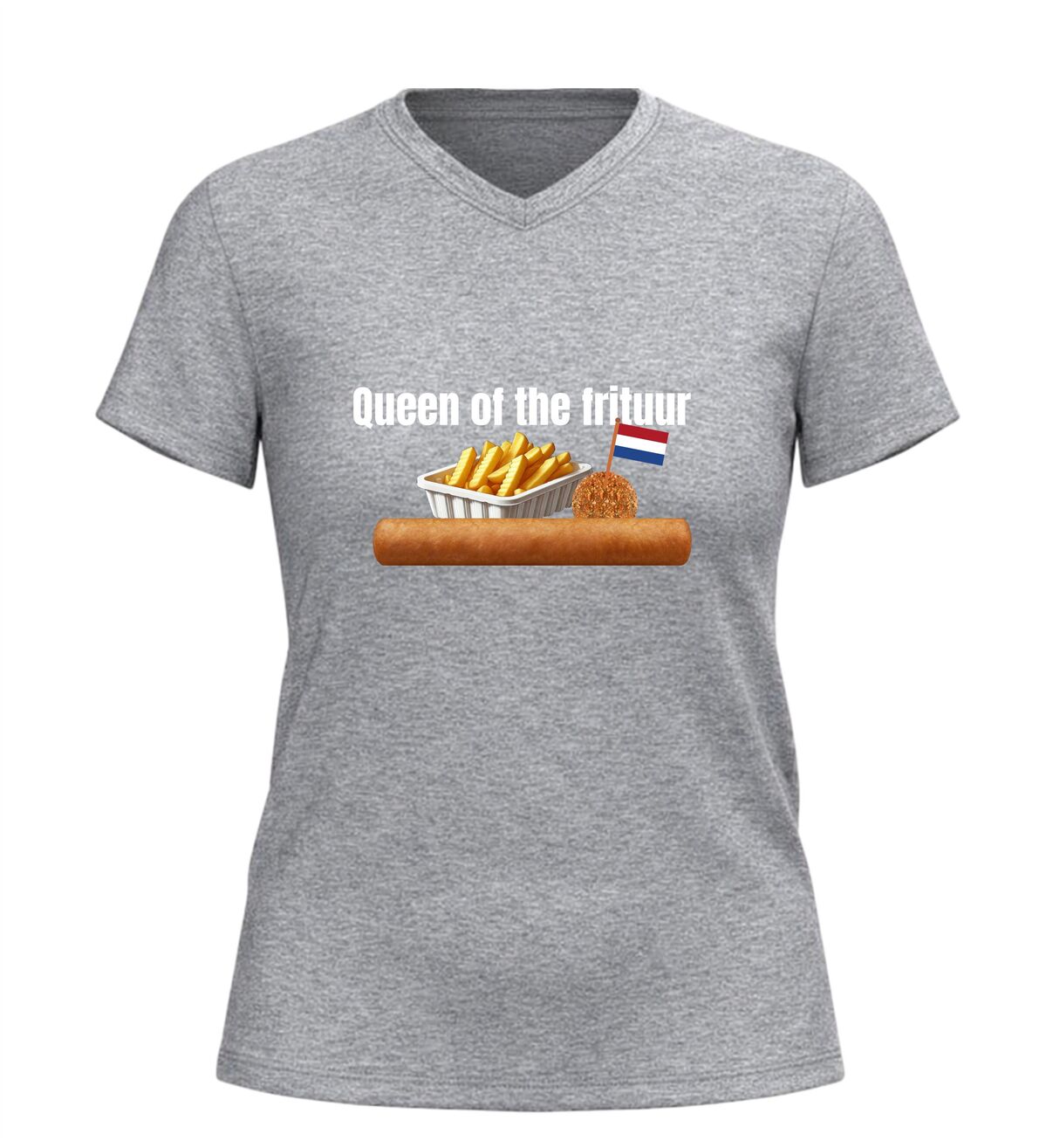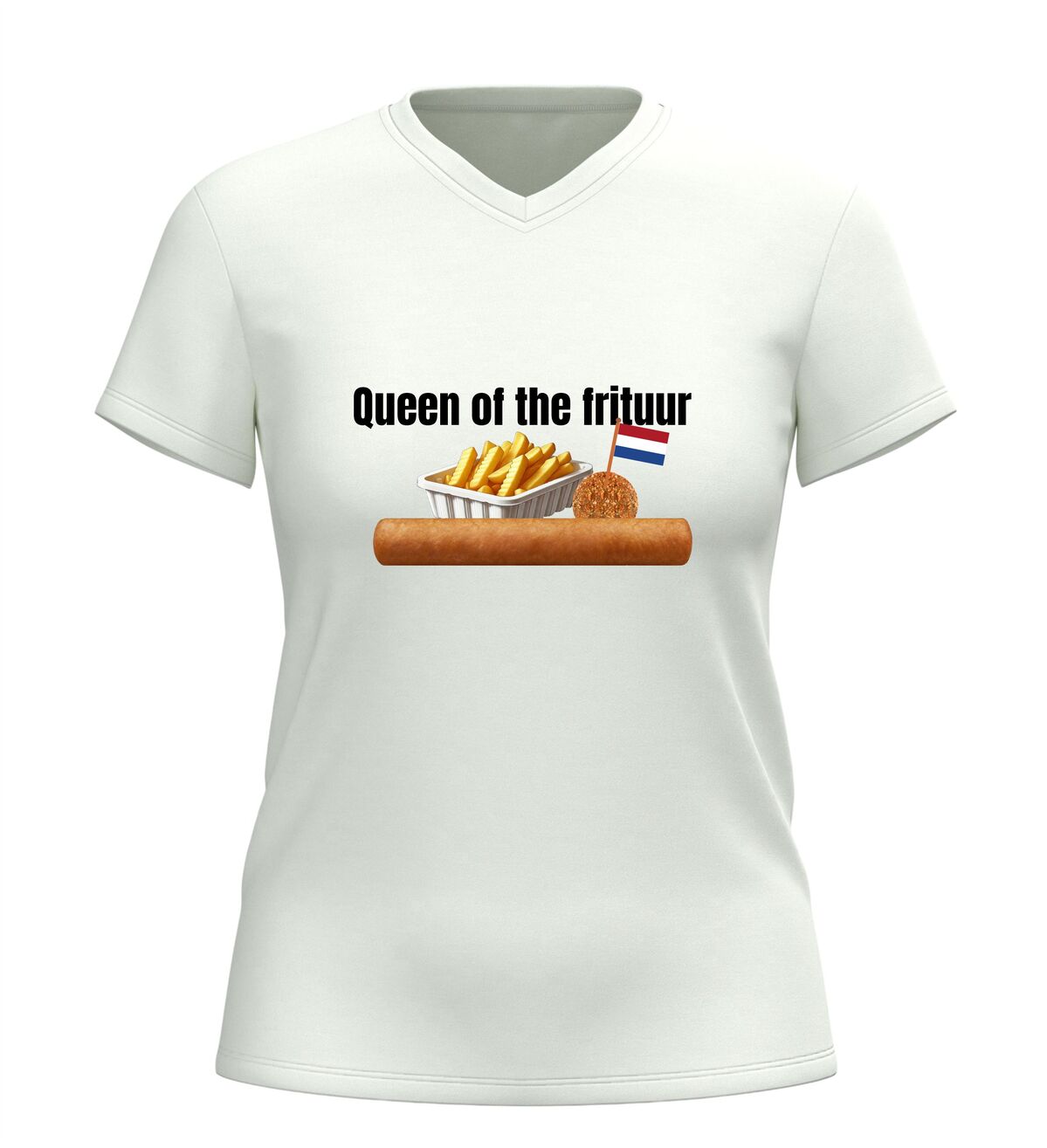 Ben je op zoek naar een v-hals shirt met patat, een queen of the frituur T-shirt, of een uniek cadeau voor een snackliefhebber, dan is dit shirt een uitstekende keuze. Met dit shirt draag je jouw liefde voor snacks met trots en humor.