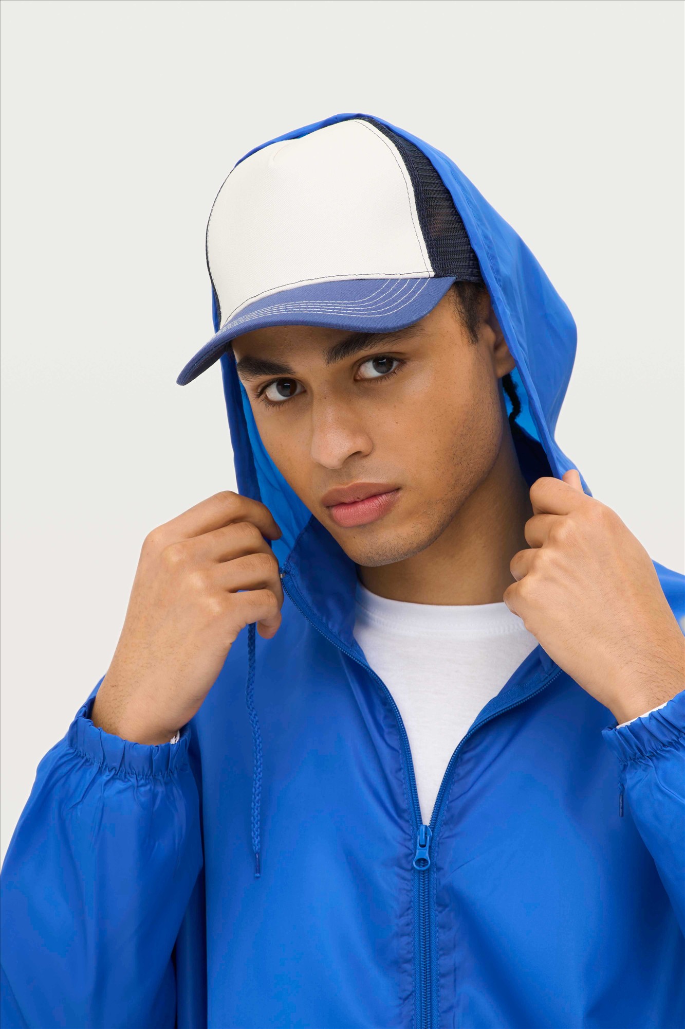 Regenjas oranje Unisex windbreaker. Opvouwbare capuchon in kraag met rits. Aansnoerkoord in capuchon en zoom. Twee steekzakken met ritssluiting. Elastische manchetten. Winddicht. Waterafstotend. Perfect voor een droog bezoekje aan een festival. Maar ook handig om over je party outfitje heen te doen tijdens de carnaval of andere party. Zo hou je party outfitje lekker droog! Foto's met model erop is een sfeer foto kleur buiten beschouwing houden.