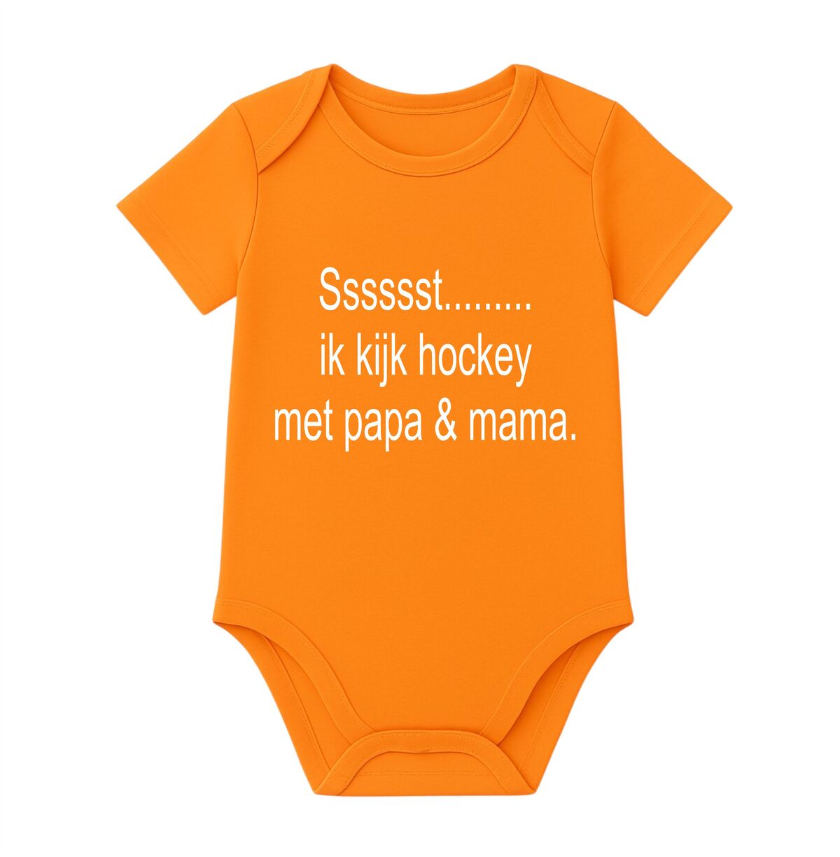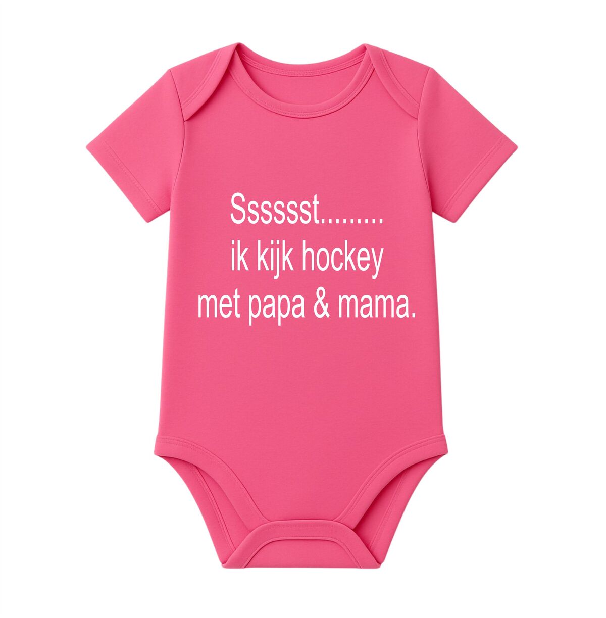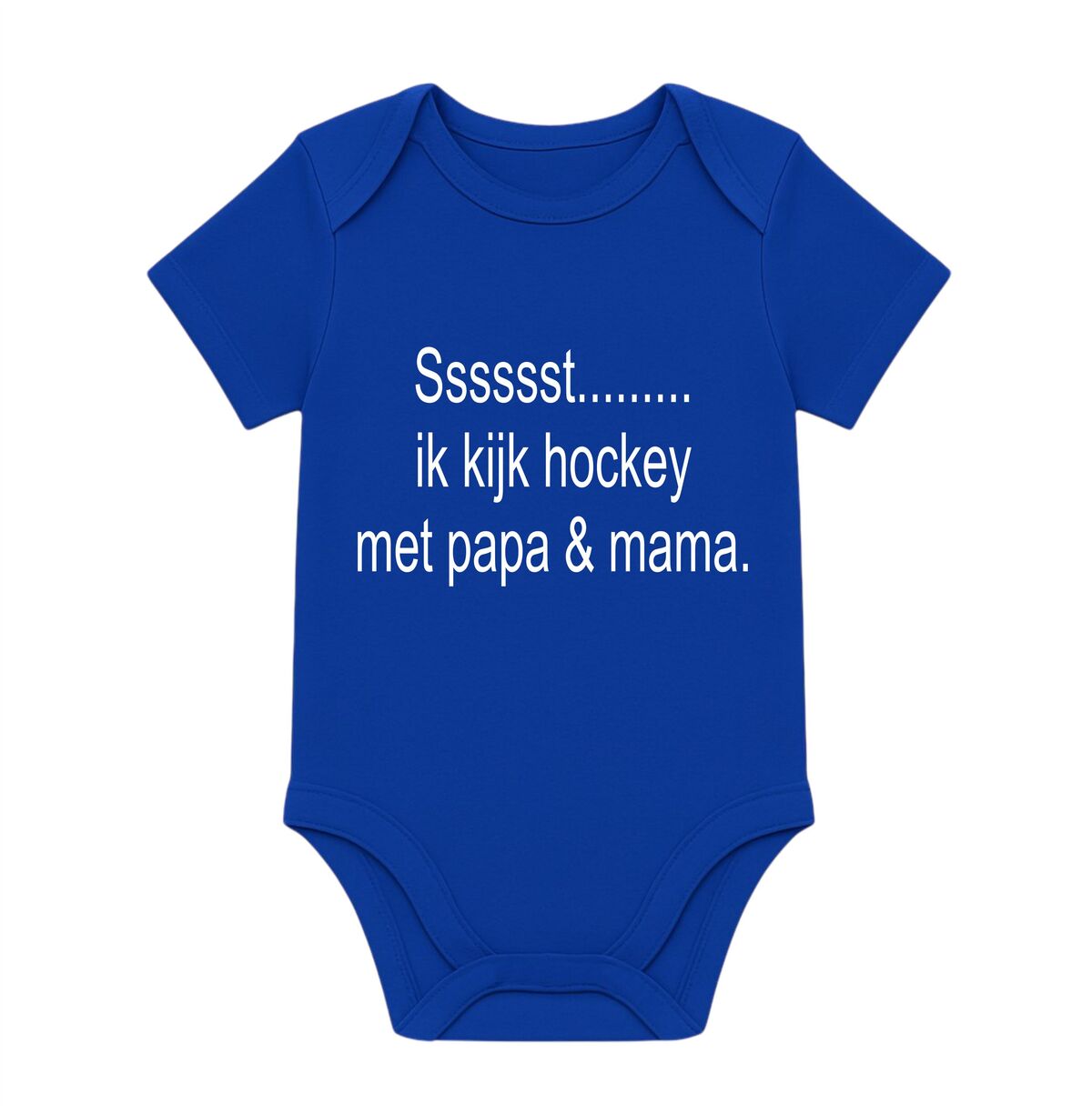 Sst… niet storen! Dit kleine sportfan’tje is druk bezig met iets belangrijks: hockey kijken met papa en mama. Superzacht, comfortabel en met een knipoog — dit rompertje zegt precies wat er aan de hand is. Perfect voor de allerkleinste supporter op de bank (of in de box).
